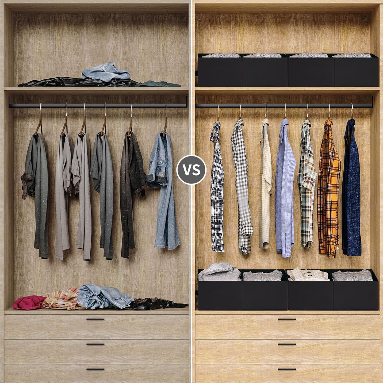 - 【Foldable & Detachable】These fabric bins can be easily folded into a flat state, saving space when not in use. These baskets for closet organization have partitions, and you can use the fabric storage bin to store clothes and daily necessities without confusion. Get rid of the regular cardboard box