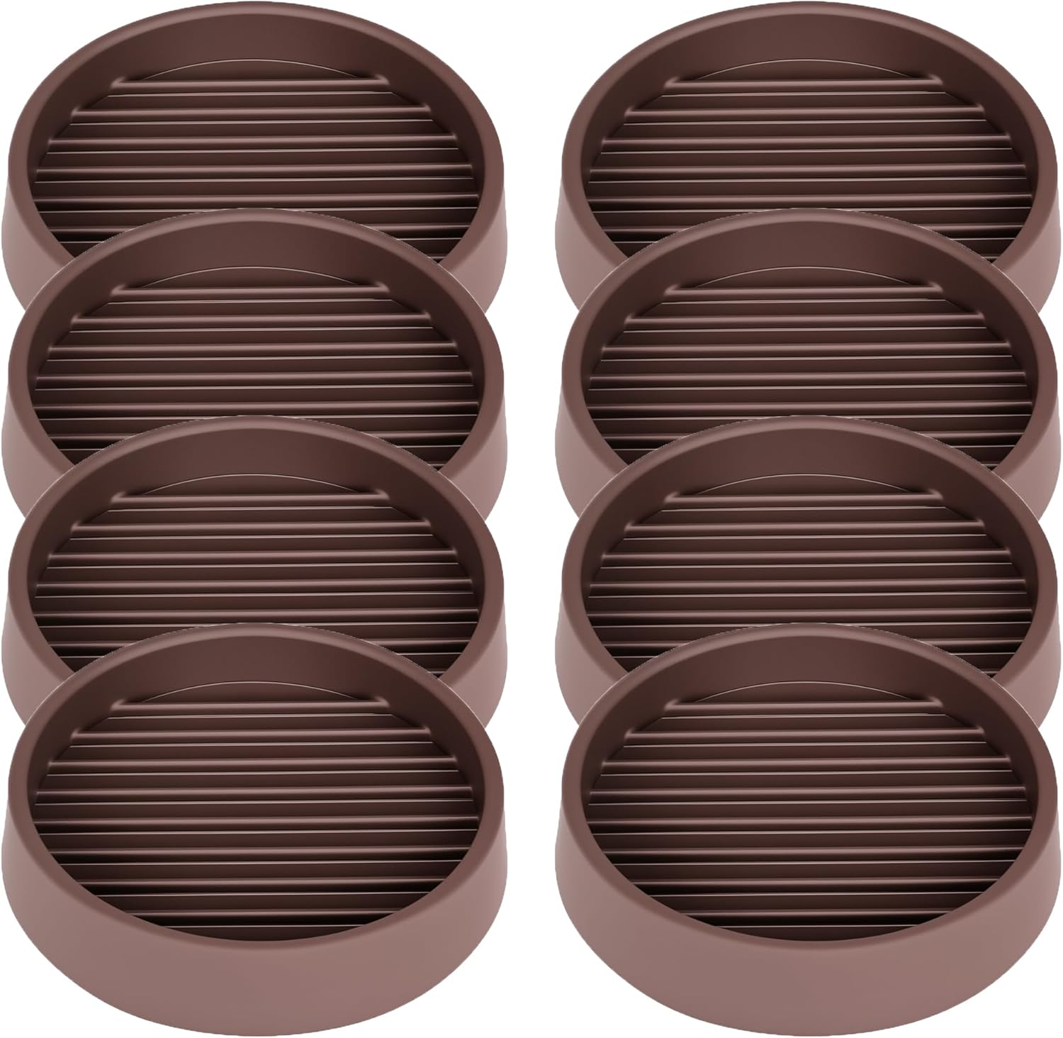 Non Slip Furniture Pads, 2.5” Round Rubber Caster Cups, 8 Pcs Furniture Coasters, Anti-Slip Gripper, Anti Slide Furnitures Feet Floor Protectors for Bed Couch Stoppers - Brown