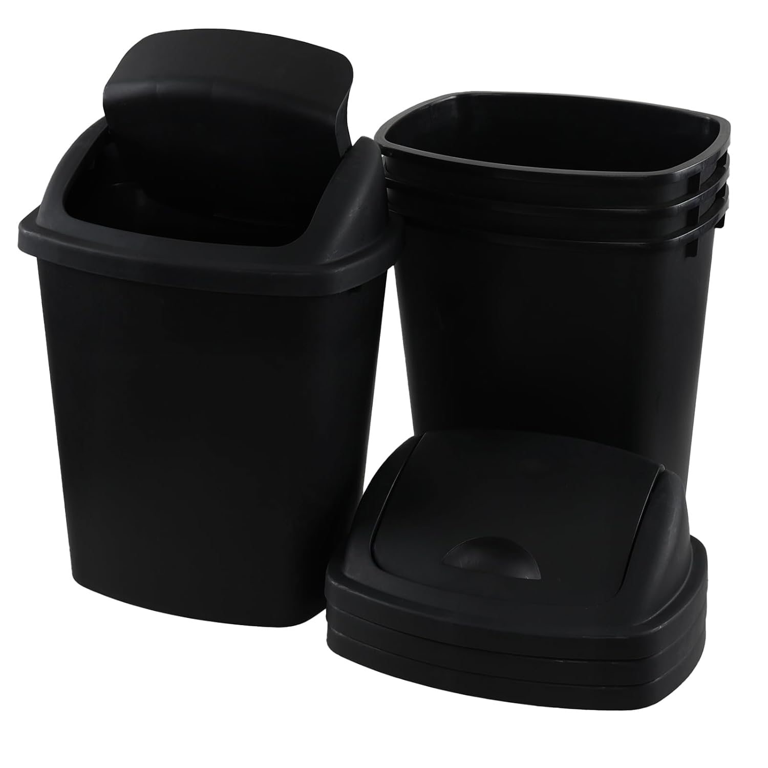 6 Gallon Swing Top Trash Can Outdoor and Indoor Recycle Bin, Plastic Garbage Can with Swing-Lid, Black, 4-Pack
