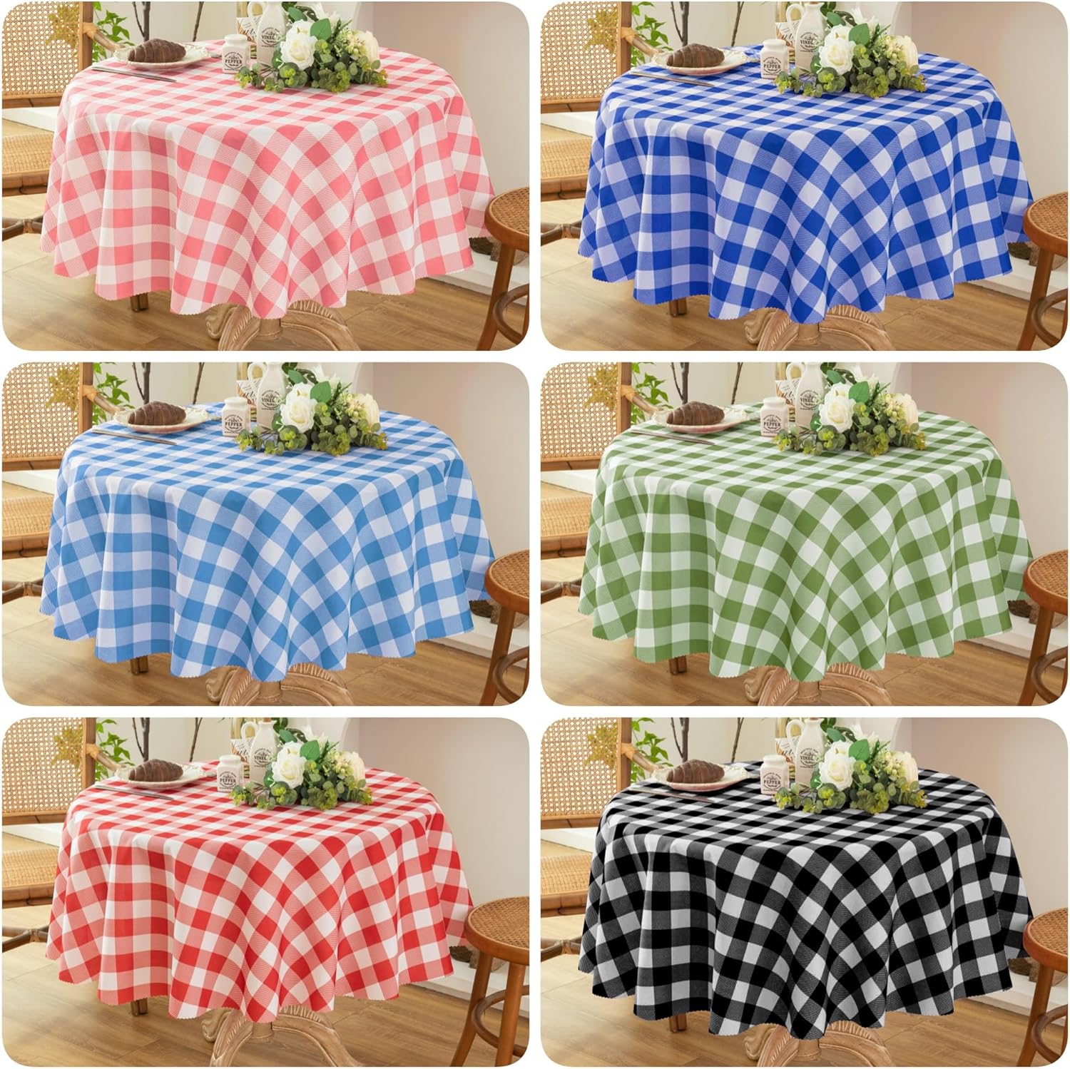 - CLASSIC GINGHAM CHECKERED DESIGN: Our checked tablecloth features a pattern of small, evenly spaced checks in two contrasting colors, often white and another color. The classic gingham plaid pattern for table cloth is a timeless and versatile choice
