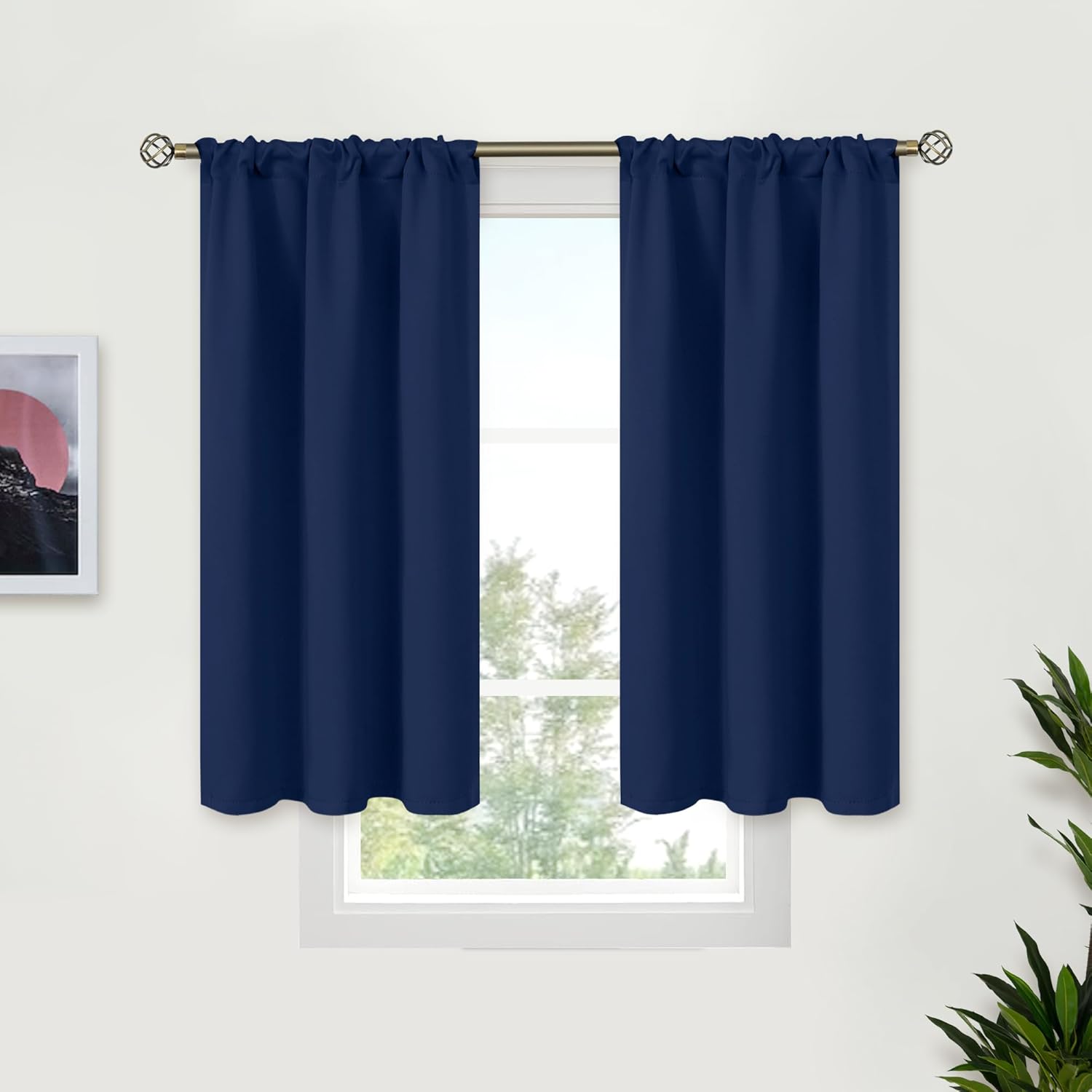 BGment Navy Blue Blackout Curtains for Short Window 34 x 45 Inch - Short Thermal Insulated Drapes with Rod Pocket Small Blinds for Kitchen Rv Camper Bathroom Window, 2 Panels