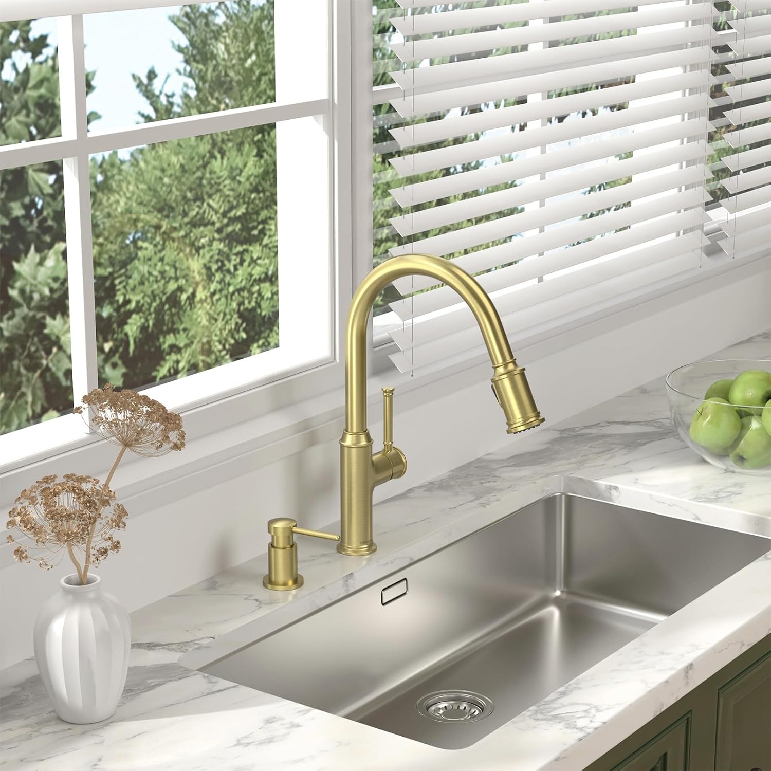- Easy to operate - A single press delivers a steady flow of soap. It can be filled by pouring from a bottle under the sink or by pumping directly from the dispenser head. The built-in kitchen soap dispenser has a large 18 oz. refillable bottle, helping you to refill less frequenly.