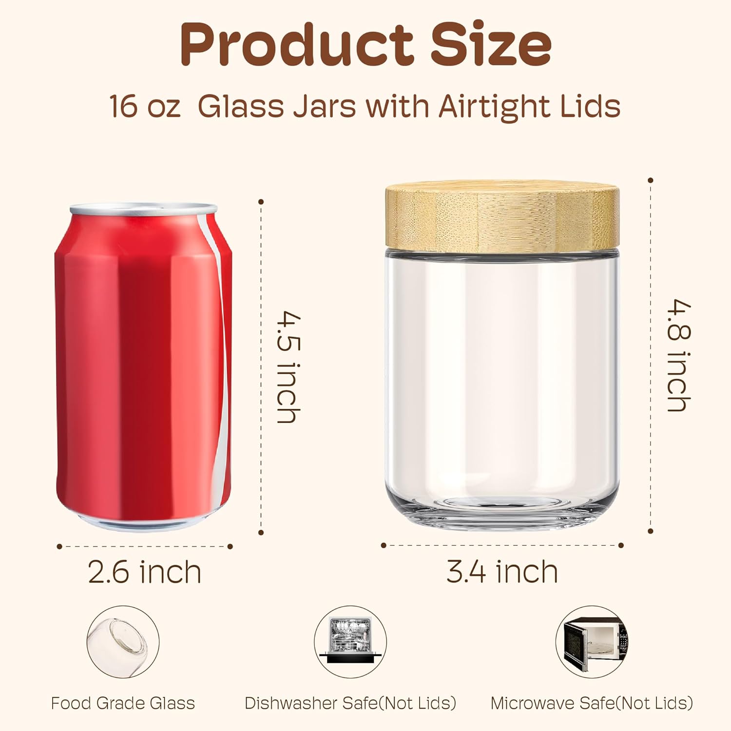 - [ Versatile Airtight Glass Jars for All Your Needs ]: Beyond overnight oats containers with bamboo lids, these glass storage containers with bamboo lids excel as yogurt jars, chia seed pudding jars, salad storage jars. Use them for homemade jams, pickles, sauces, spice, or even for craft projects and decorative displays. From food storage to DIY decor, their aesthetic design and functionality makes them seamlessly fit into any kitchen or home decor, making them an essential item for every home