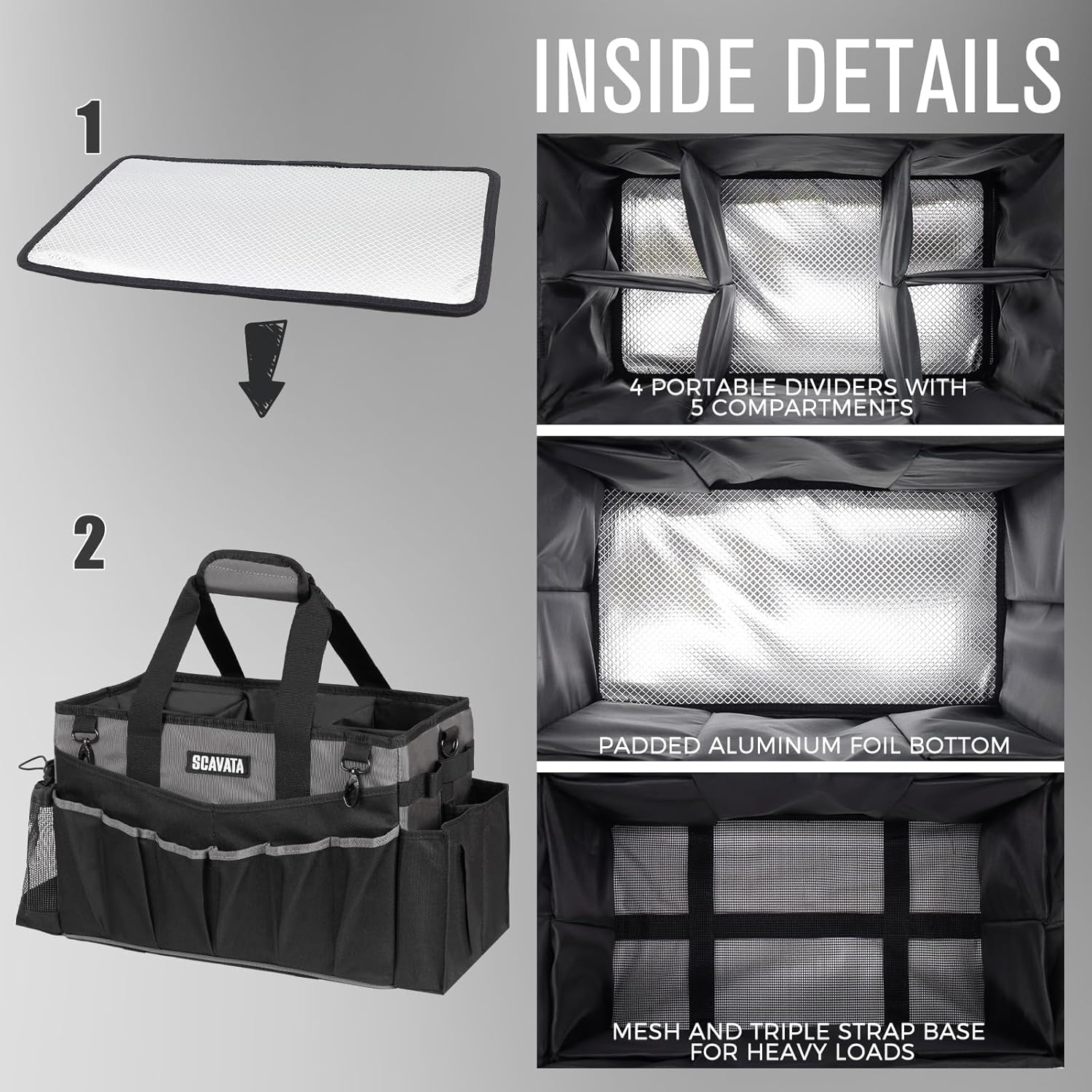 - Special Design: The wearable cleaning caddy bag comes with 2 adjustable dividers for you to customize the internal layouts of the bag. Also, equipped with aluminum foil pad bottom to keep the bag dry and clean. No more worried about damp, grime or bad smells where your cleaning products are stored