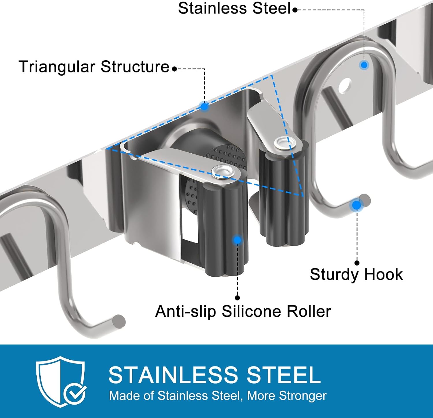 - Premium Stainless Steel Broom Holder: Built with ultra-durable, rust-proof stainless steel for exceptional strength and longevity. Resists damage and thrives in damp environments, no breakage worries
