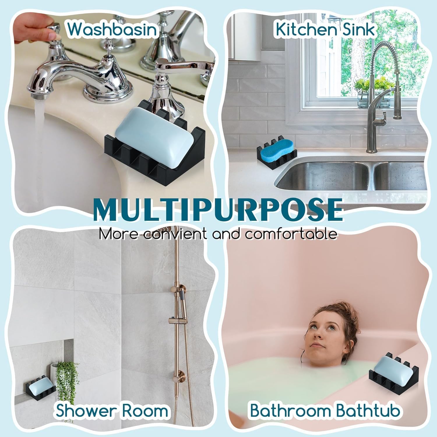 - Premium Material:Our soap savers is made of high quality soft silicone, non-slip and durable, flexible to the touch, easy to clean, and won't break, it is a great soap saver or dish washing sponge holder!
