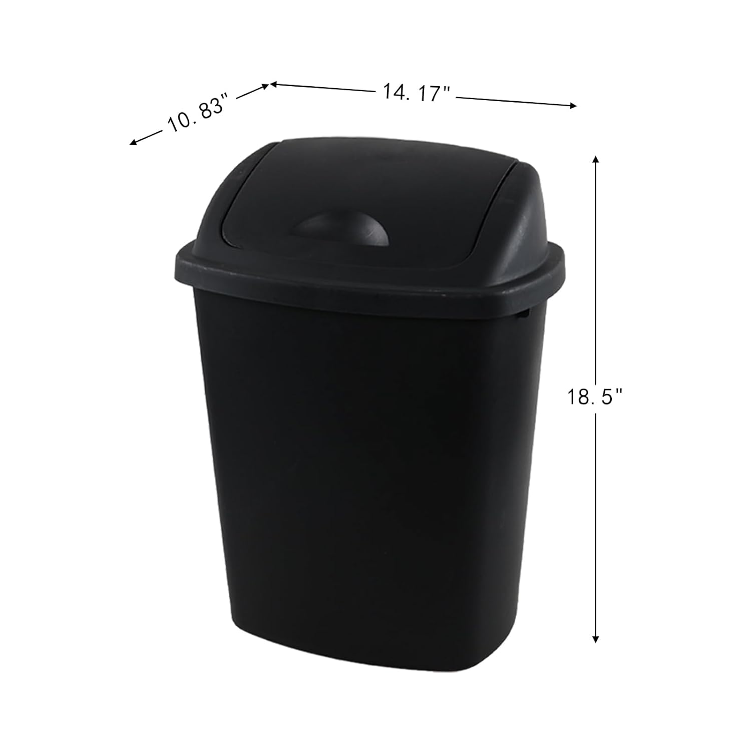 - Includes 4 swing lid trash cans, each measuring: 14.17" x 10.83" x 18.5"
