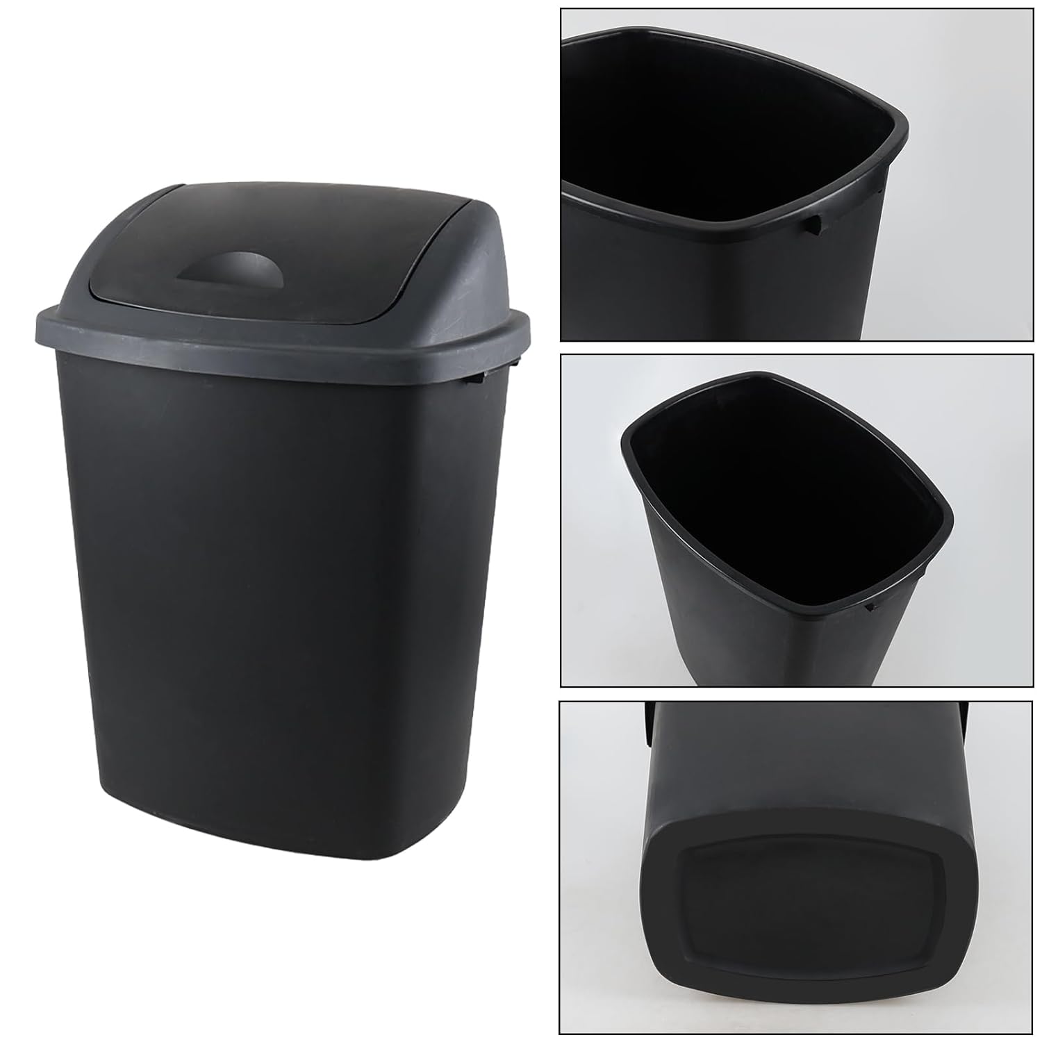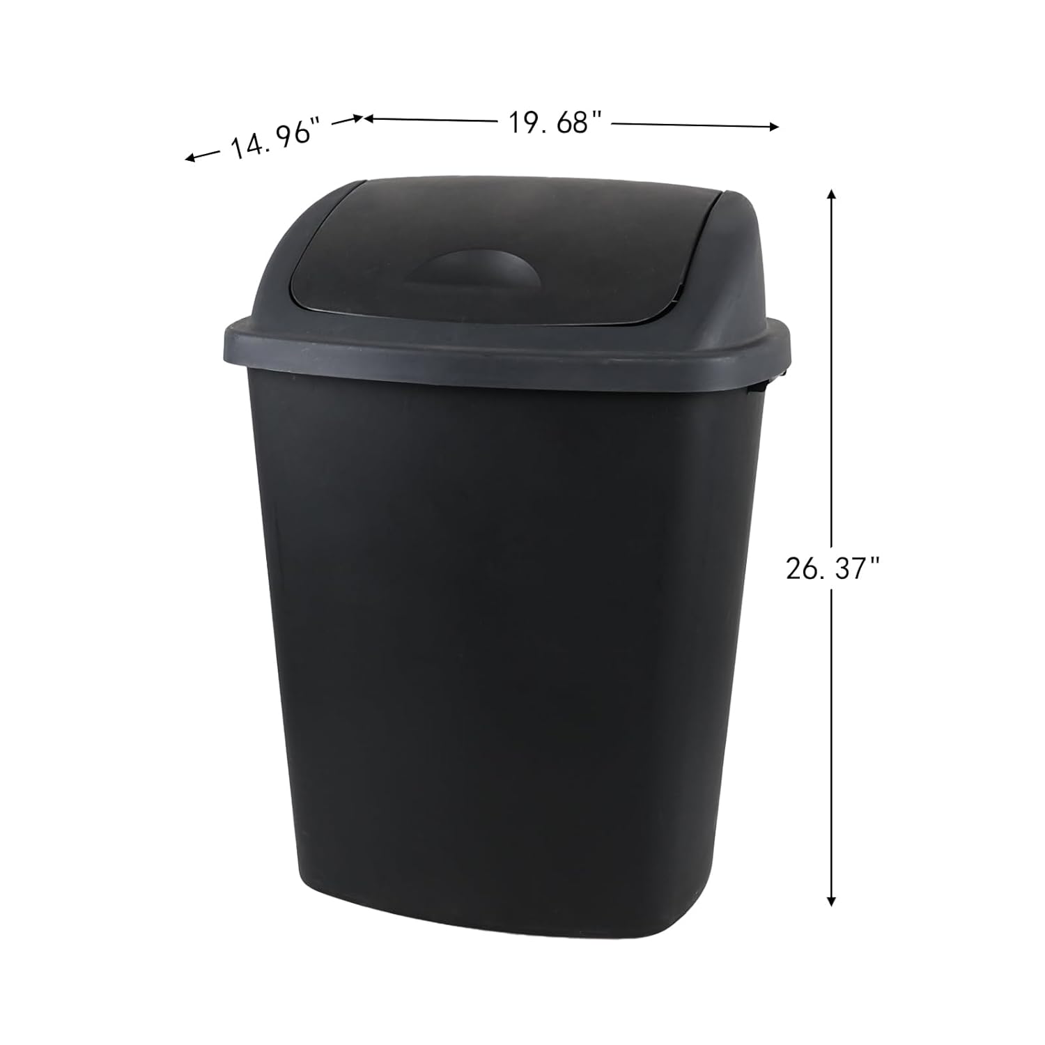 - Includes 4 swing lid trash cans, each measuring: 19.68" x 14.96" x 26.37"