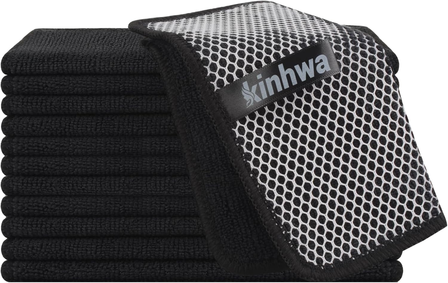 KinHwa Kitchen Washcloths for Dishes Absorbent Microfiber Dish Cloths Quick Dry Dish Rags with Poly Scour Scrub Side Ideal for Kitchen Cleaning (Black, 7inchx7inch 12 Pack)
