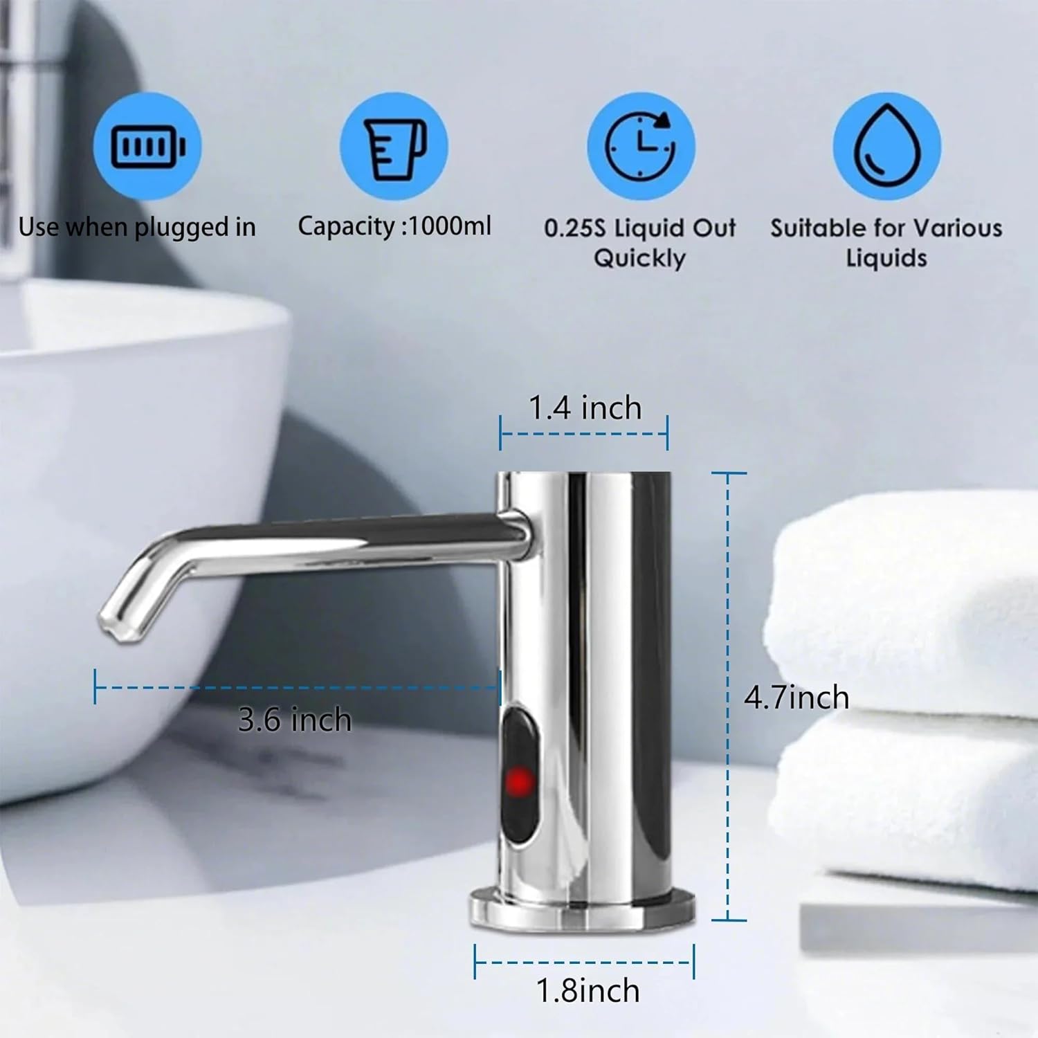 - Premium Brass Construction:This automatic soap dispenser combines a solid brass core with a polished electroplated finish. The brass provides lasting durability, while the plating creates an easy-to-clean surface that minimizes water marks. Designed to perform reliably in humid bathroom and kitchen environments.