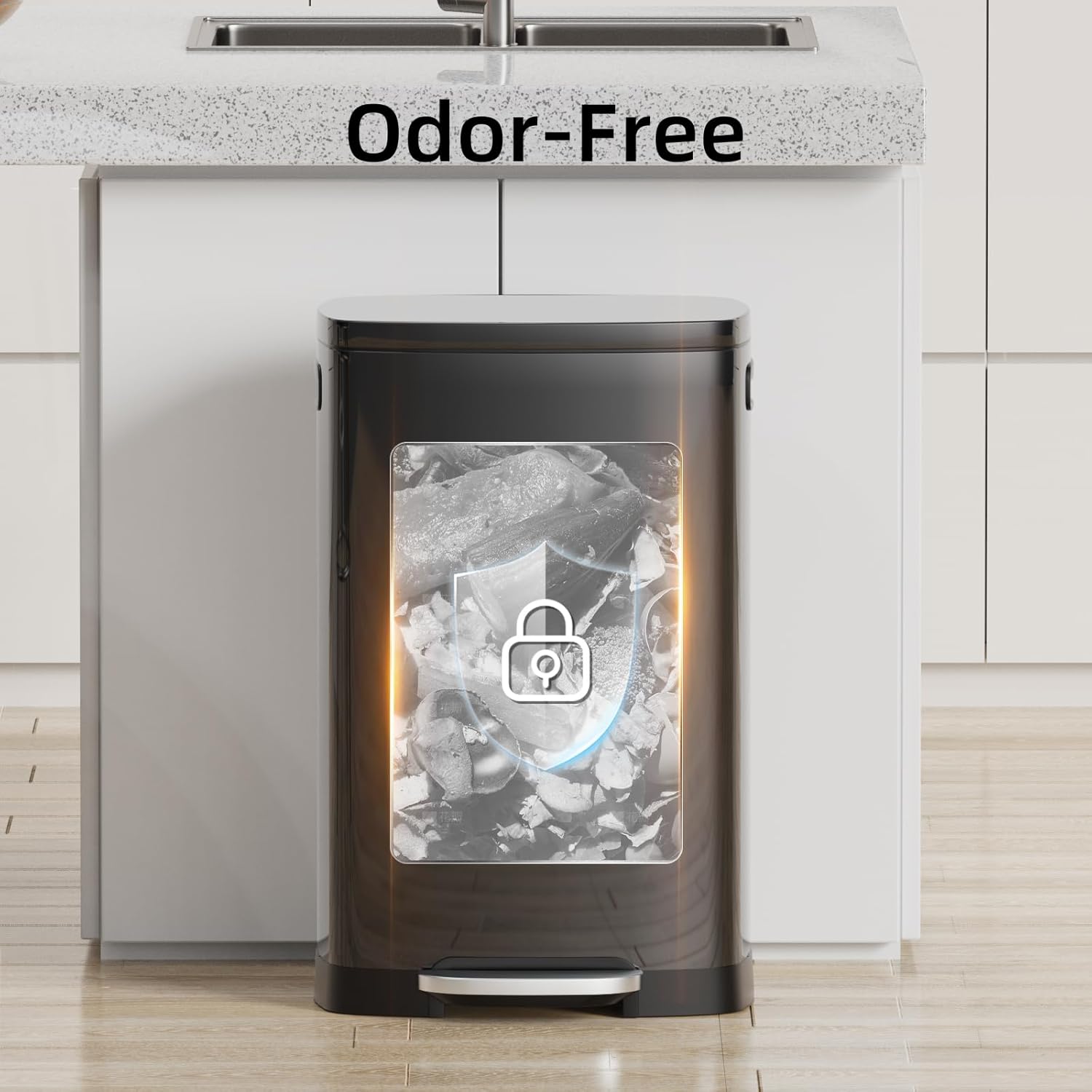 - 🚮 Large Capacity & Odor Lock Technology: 50L (13 Gallon) extra-large capacity reduces frequent trash runs, perfect for busy kitchens. Sealed lid with odor-blocking design traps smells, keeping your space fresh and clean.