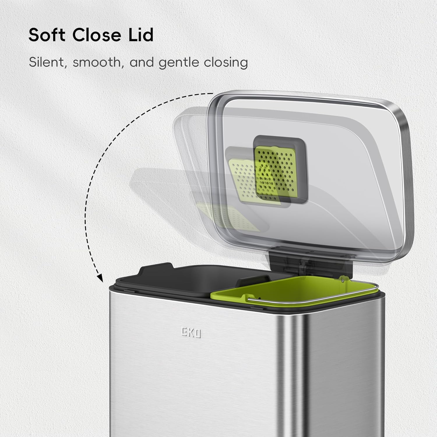 - Elevated Inner Liner with Handles - The EKO trash can includes a raised inner liner with easy-to-grip handles, making bag replacement quick and hassle-free