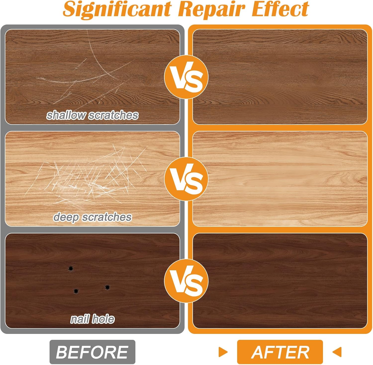 - FAST REPAIR: Those putty sticks for baseboard can repair scratches, cracks, wear, and small holes on the surface of wood, and the repair effect can be immediately seen, greatly saving time and effort in furniture maintenance.