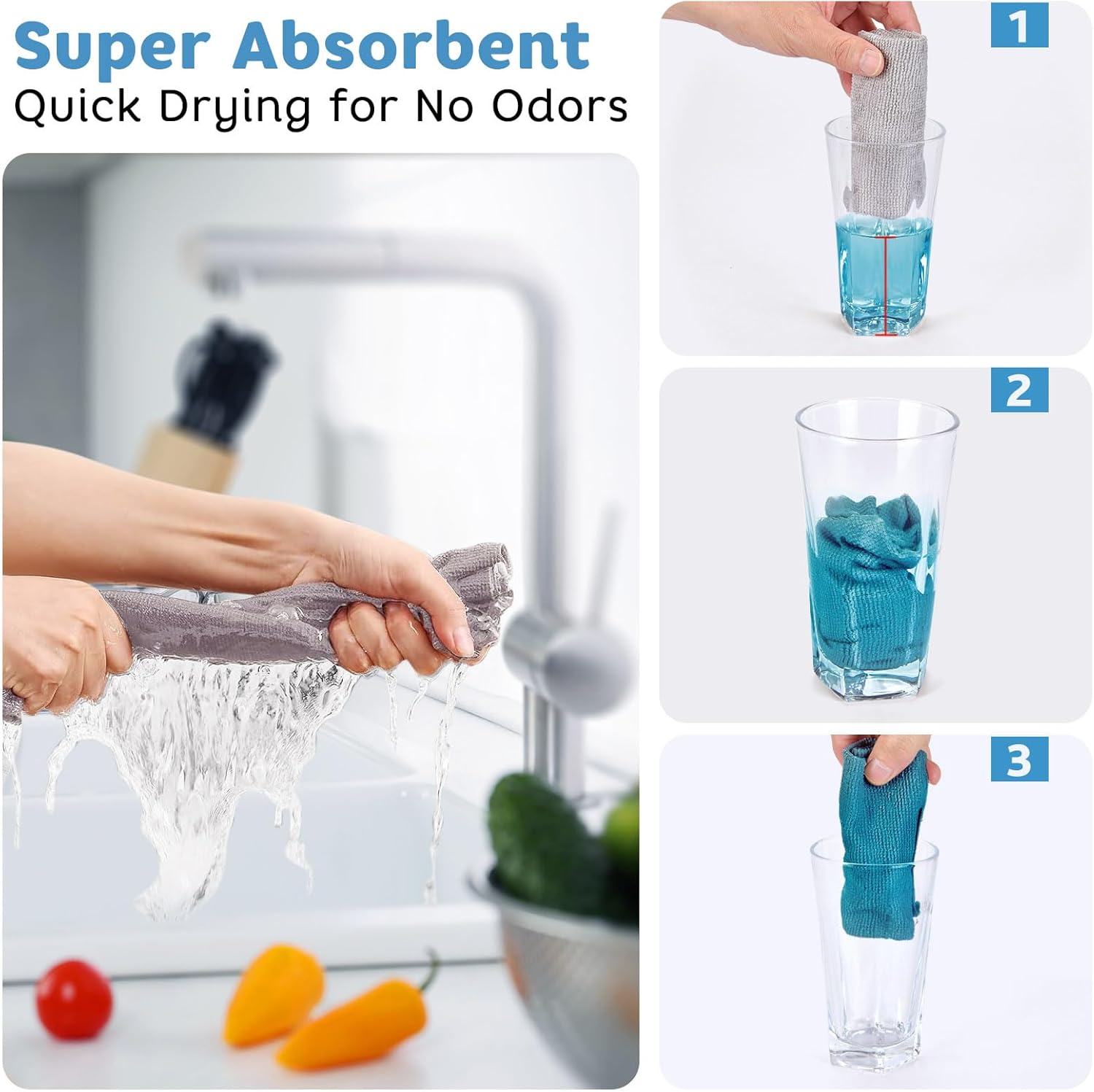 - Instant SOAK UP - Absorbing 4 times more than cotton cloths and 5 times their weight in water, these microfiber cleaning cloths are the all-purpose rags for glass, dishes, automotive,and smooth surfaces.They quickly tackle messes, oils, and liquids, outperforming sponges&conventional towels in speed and efficiency
