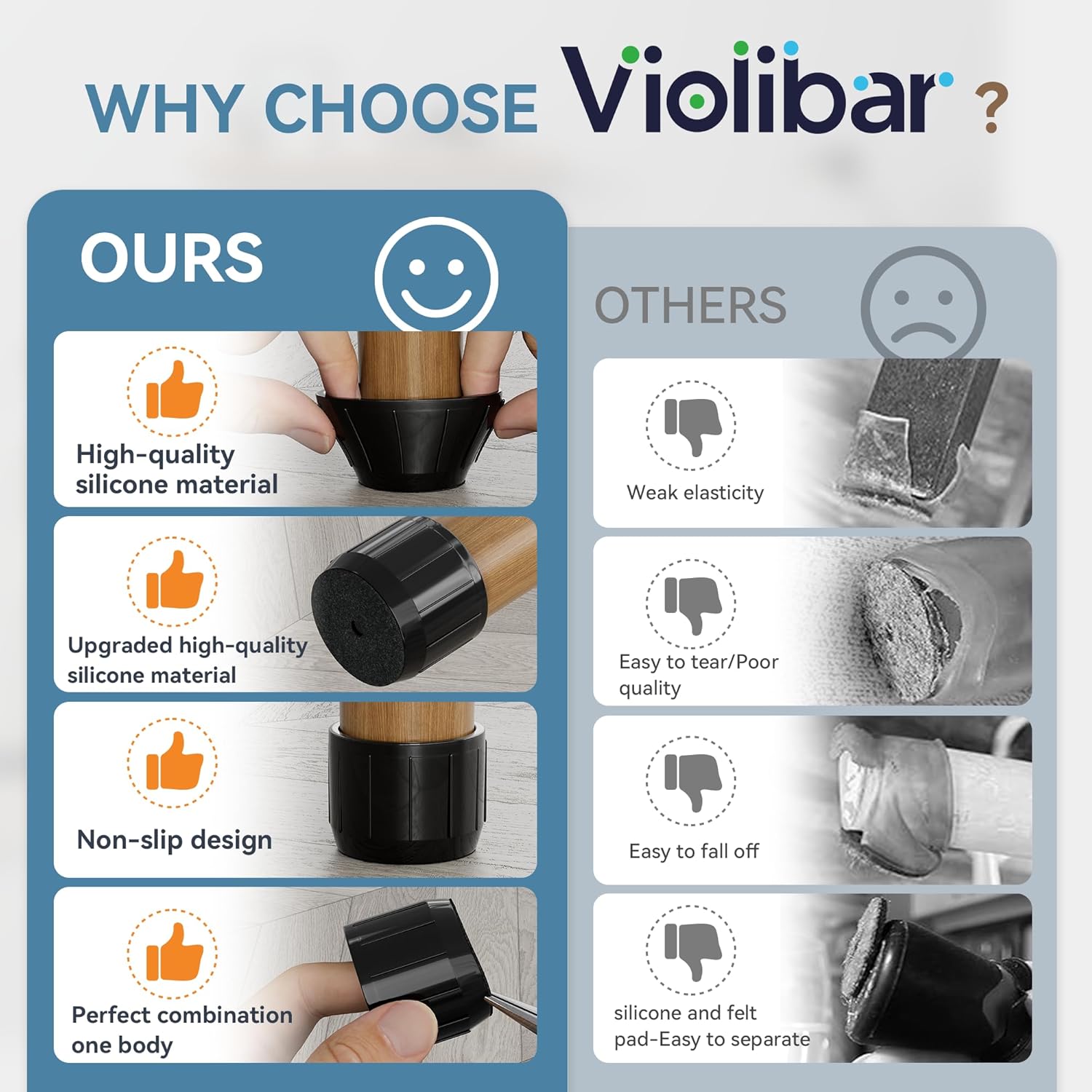 - ✅【Comprehensive Improvement】The chair leg floor protectors use special technology to combine the felt and silicone into one inseparable piece, which prevent the felt pad from falling off during use. We chose the premium quality silicone material which bonds the felt pad better, and won't tear easily when stretched.