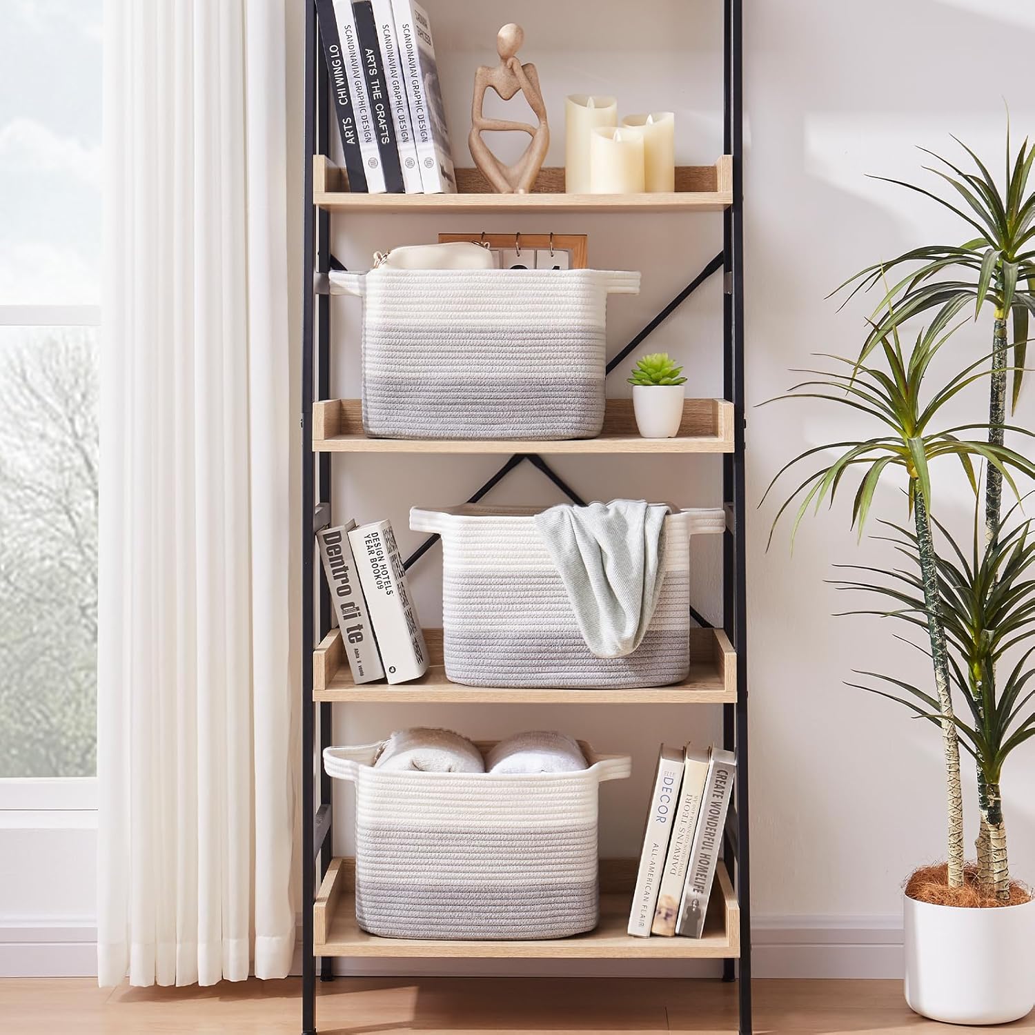 Storage Baskets for Organizing, Woven Baskets for Shelves, Rectangle Decorative Organizer for Storage Clothes, Toy, Books, Towels Nursery Bins 3 Pack (Gradient Grey)