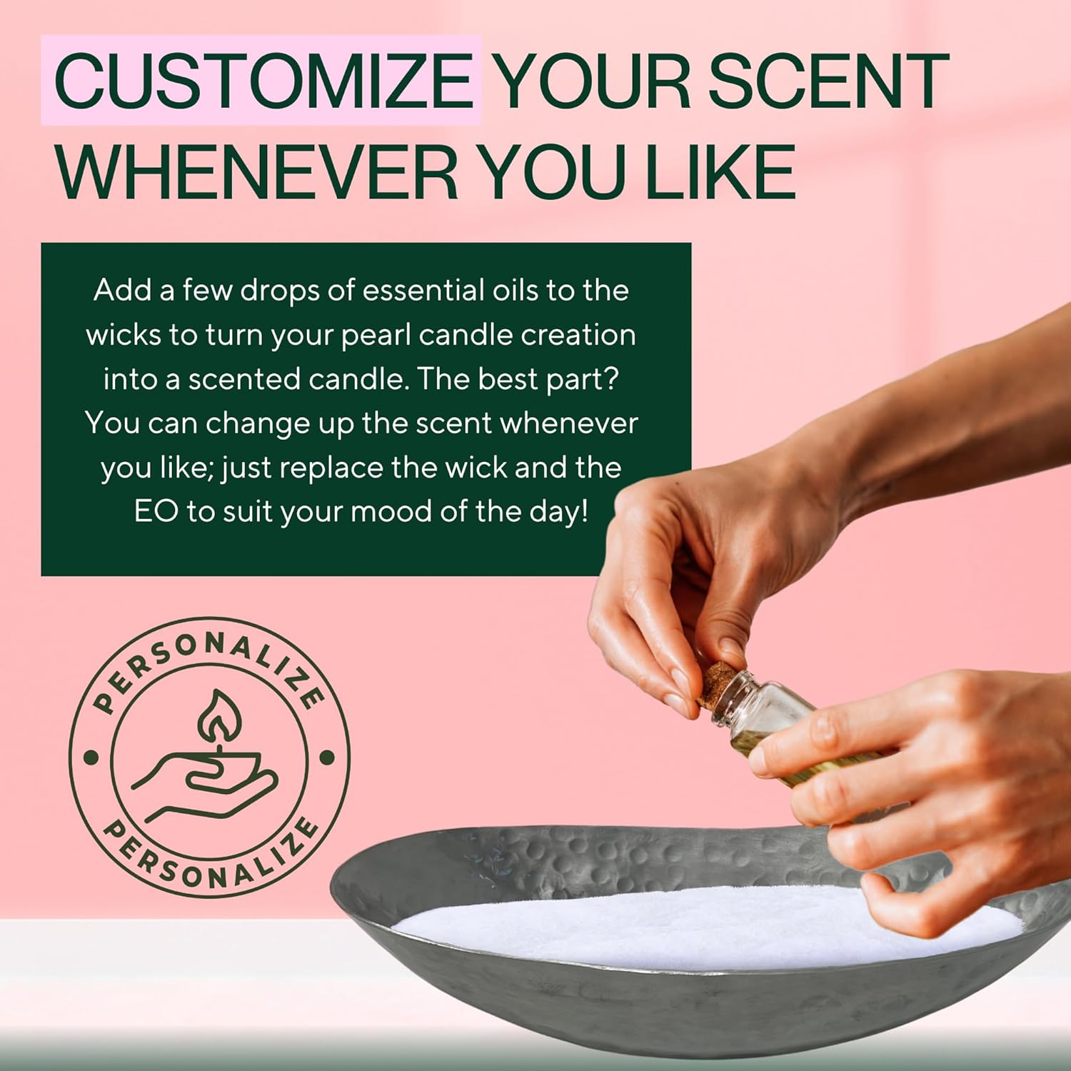 - Timeless Accent- Our pearl candles sand and wicks come with a gorgeous hammered silver pearled candle holder. Not in the mood to pour your candle sand wax? Turn the sand candle wax bowl into a pretty centerpiece or decor item. Let your creativity shine!