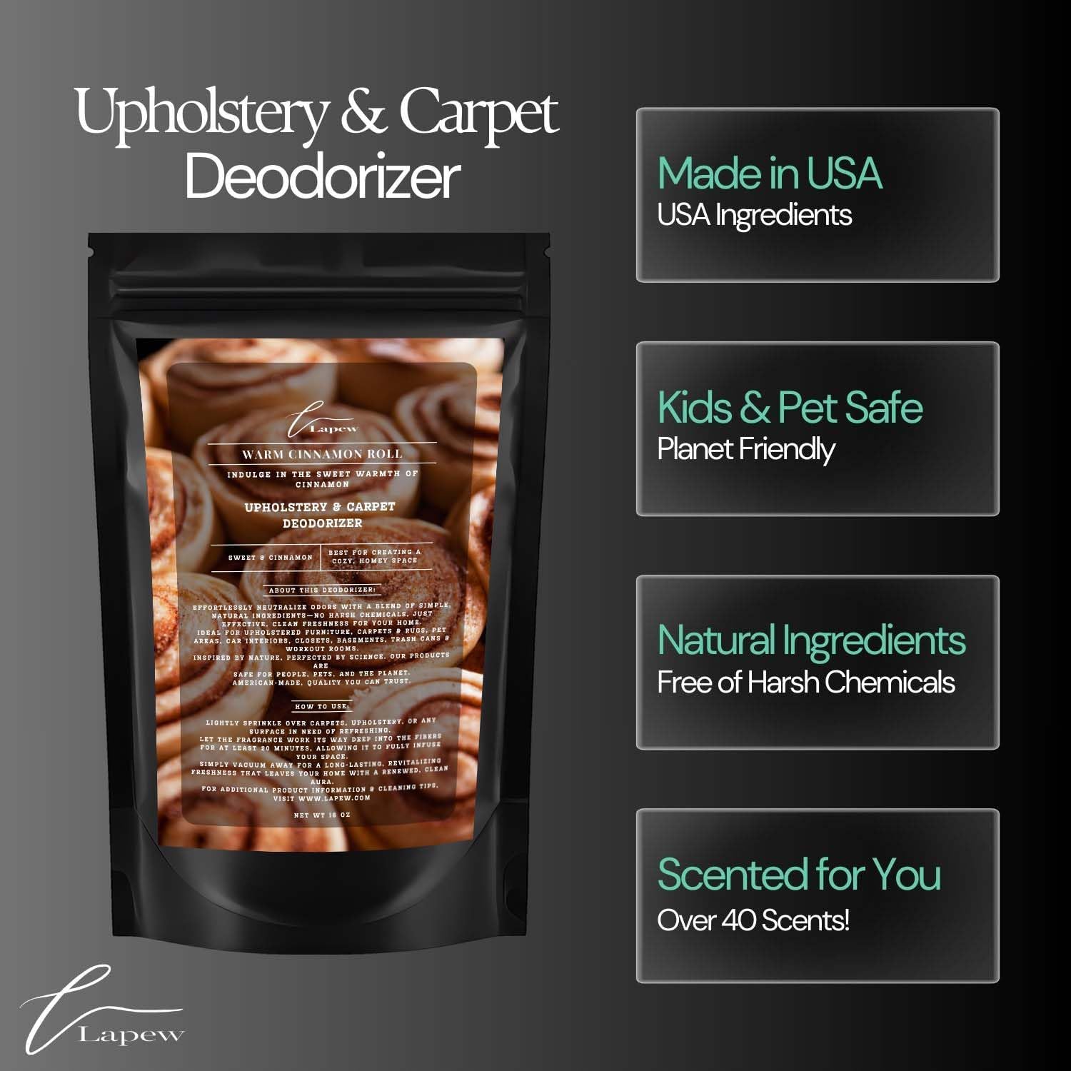 - Powerful Odor Eliminator for Strong Odors: Say goodbye to stubborn smells with the Lapew Warm Cinnamon Roll Carpet Freshener Powder, specially formulated to tackle everyday room odors.