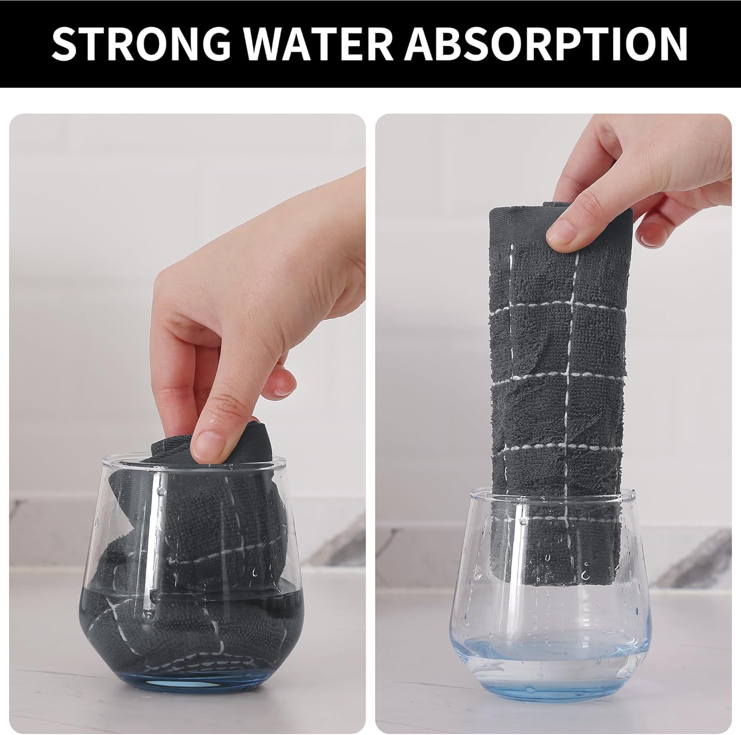 - Super Absorbent: These dish cloths are designed with upgraded terry structure, are lightweight, highly absorbent, and dry quickly. They can easily absorb plenty of liquid or wipe oil stains