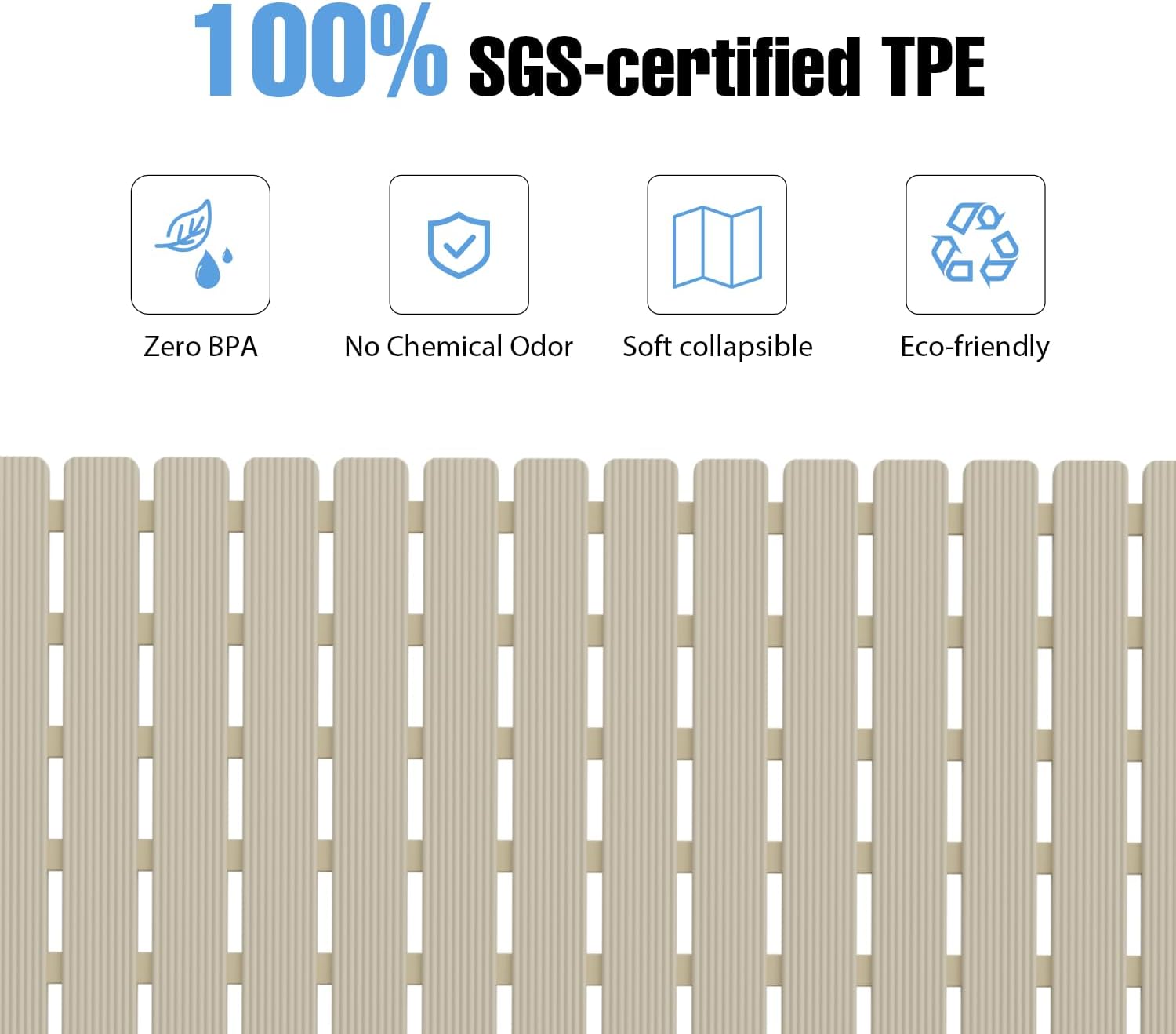 - SGS-Certified TPE: This non-slip bath mat for shower/tub is crafted with 100% SGS-certified TPE (Test Report NO.CANEC25008026405), featuring Zero BPA & Chemical Odor,trusted by 12,000+ Families for Baby Bath Time Safety.