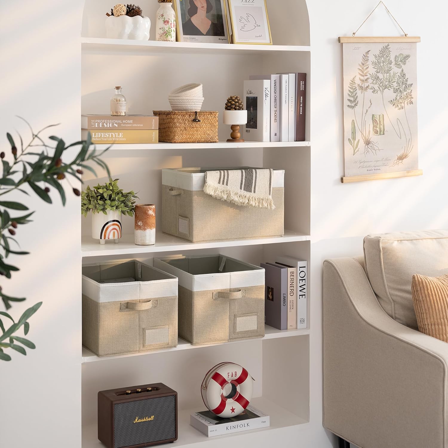 GRANNY SAYS Closet Storage Baskets for Shelves, Large Fabric Storage Bins, Collapsible Clothing Storage and Organization, Decorative Storage Bins, Khaki&Ivory, Extra Large, 3-Pack