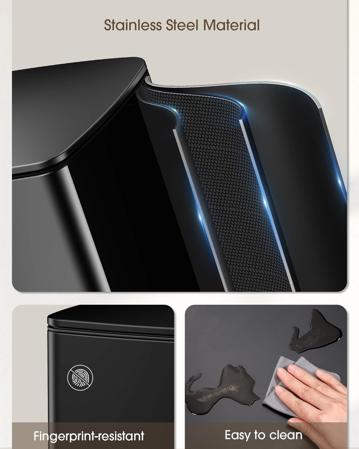 - Stainless Steel Construction: Our kitchen trash can is made from high-quality stainless steel, ensuring durability and resistance to rust and stains