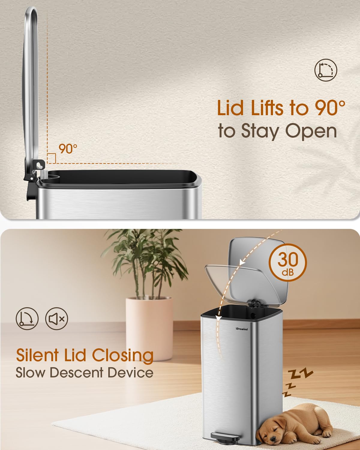 - Stainless Steel Construction: Our kitchen trash can is made from high-quality stainless steel, ensuring durability and resistance to rust and stains