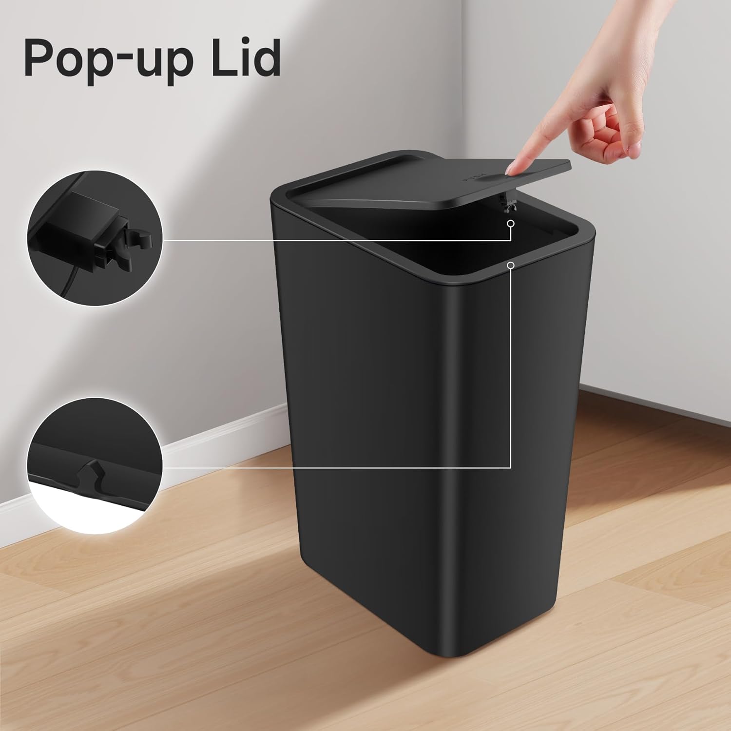 - Handy and Easy to Use: Adopt effortless pop-up lid. Lightly press the top to open, toss trash, press the top to close/latch. You will like the convenience of the lids that open and close so easily