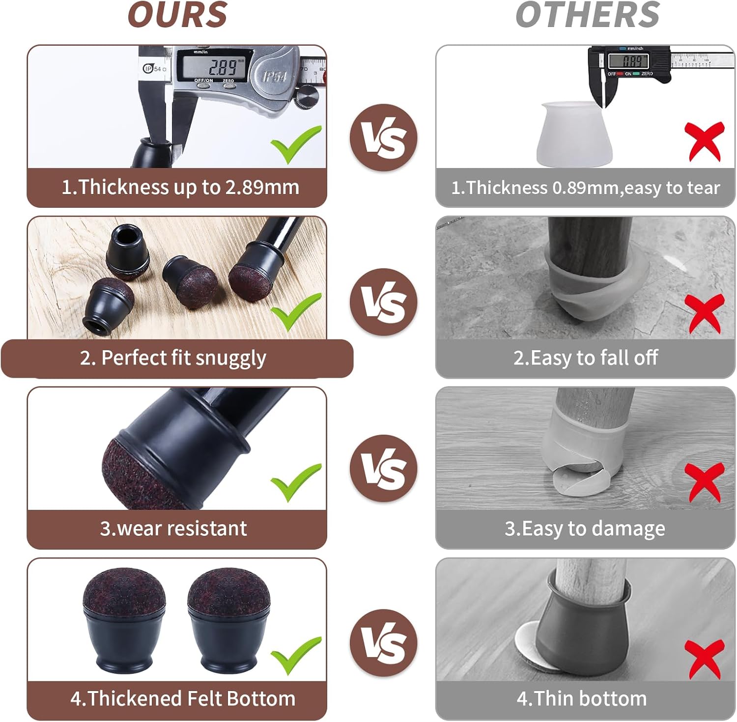 - ☛【Not Easy to Fall Off】- Chair leg caps is made of premium soft thermo-plastic-elastomer material, which is stretchable. They are easy to slip-on, and it tightly wrap legs, and not easy to fall off.