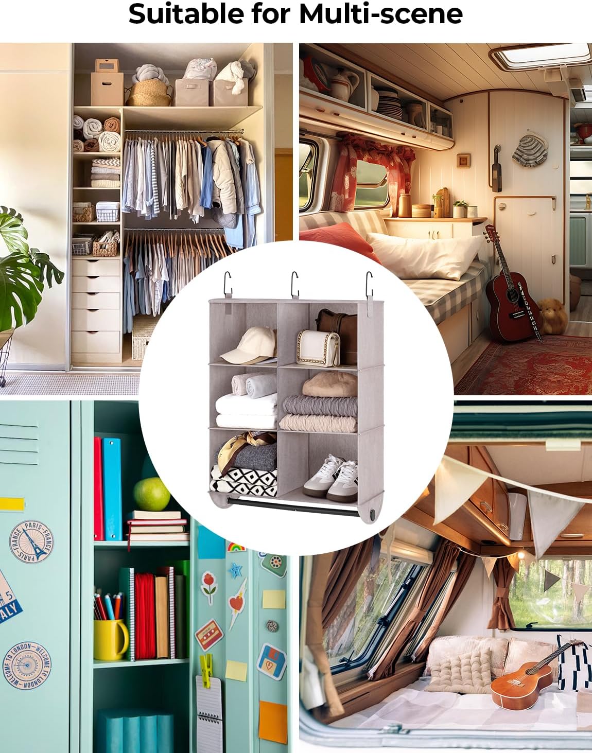 - Versatile Use: The hanging storage organizer is ideal for closets, college dorms, RVs, kids’ rooms, cubbies, or anywhere you need extra storage and organization.