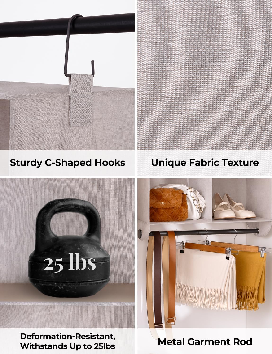 StorageWorks Hanging Closet Organizer with Metal Rod, 6-Section Closet Organizers and Storage, Collapsible Hanging Shelves for Wardrobe Organizer, Nursery, Bedroom, Light Khaki