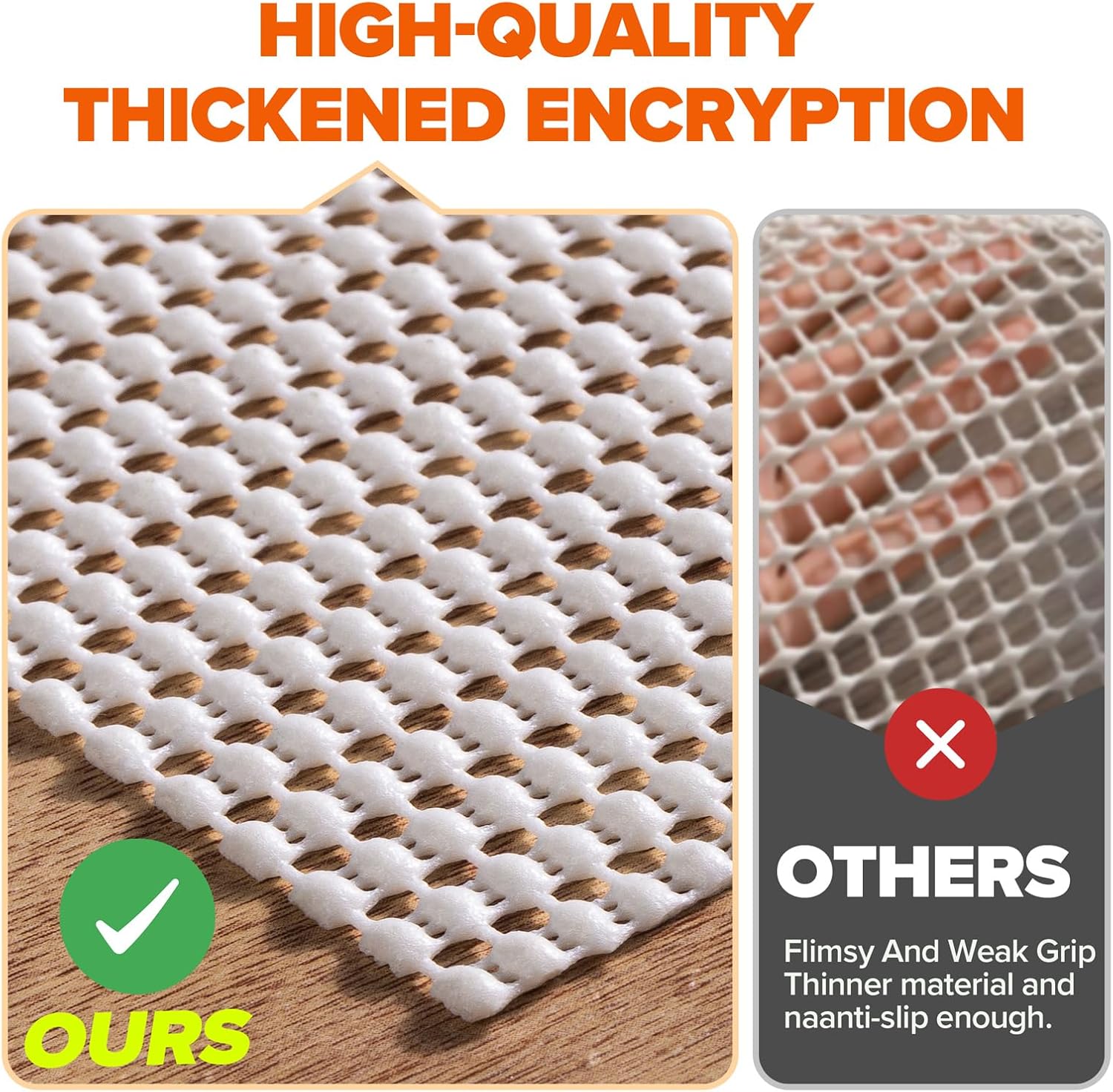- Versatile Use: This versatile rug pad can be used not only for rugs but also for furniture, sofa cushions, mattresses, and even in kitchen cabinets or drawers for non-slip protection. Its lightweight and non-adhesive design make it easy to install, remove, and will not leave any sticky residue.