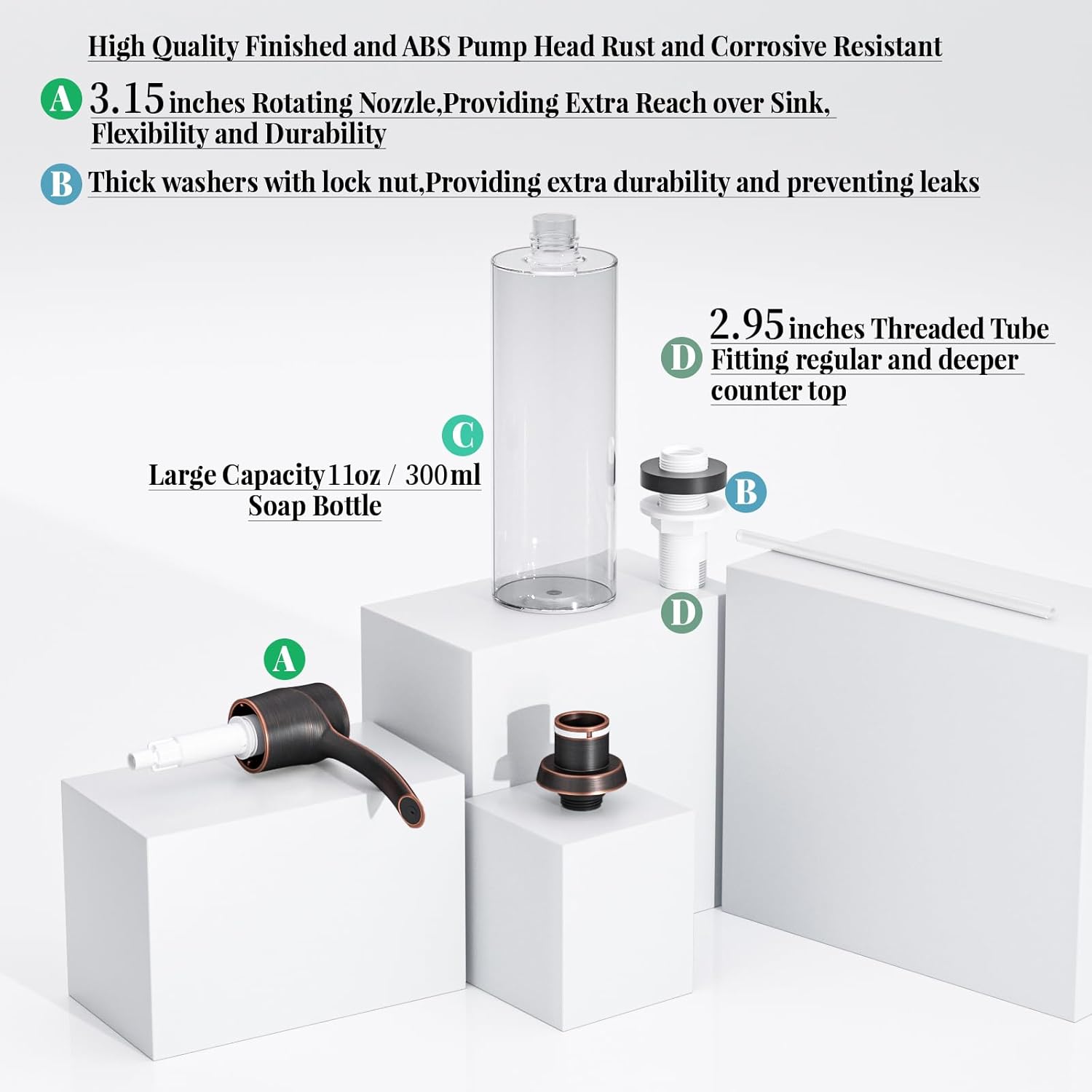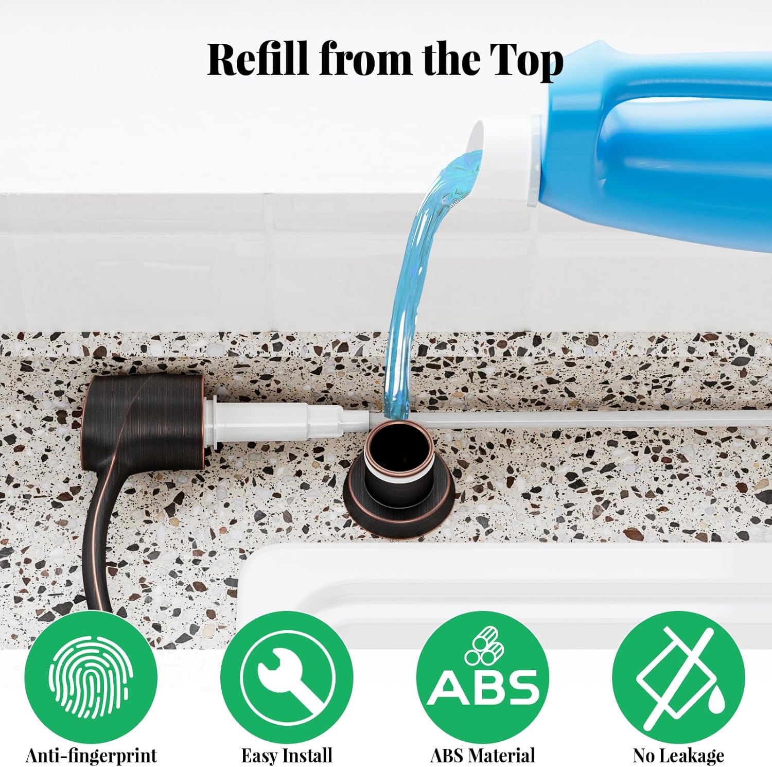 - ABS Material: Like most od other dispenser on the market, SAMODRA kitchen soap dispenser is made of ABS, which is dur able and anti-corrosion. You only need to gently press the pump head, the soap will flow out smoothly without any leakage.