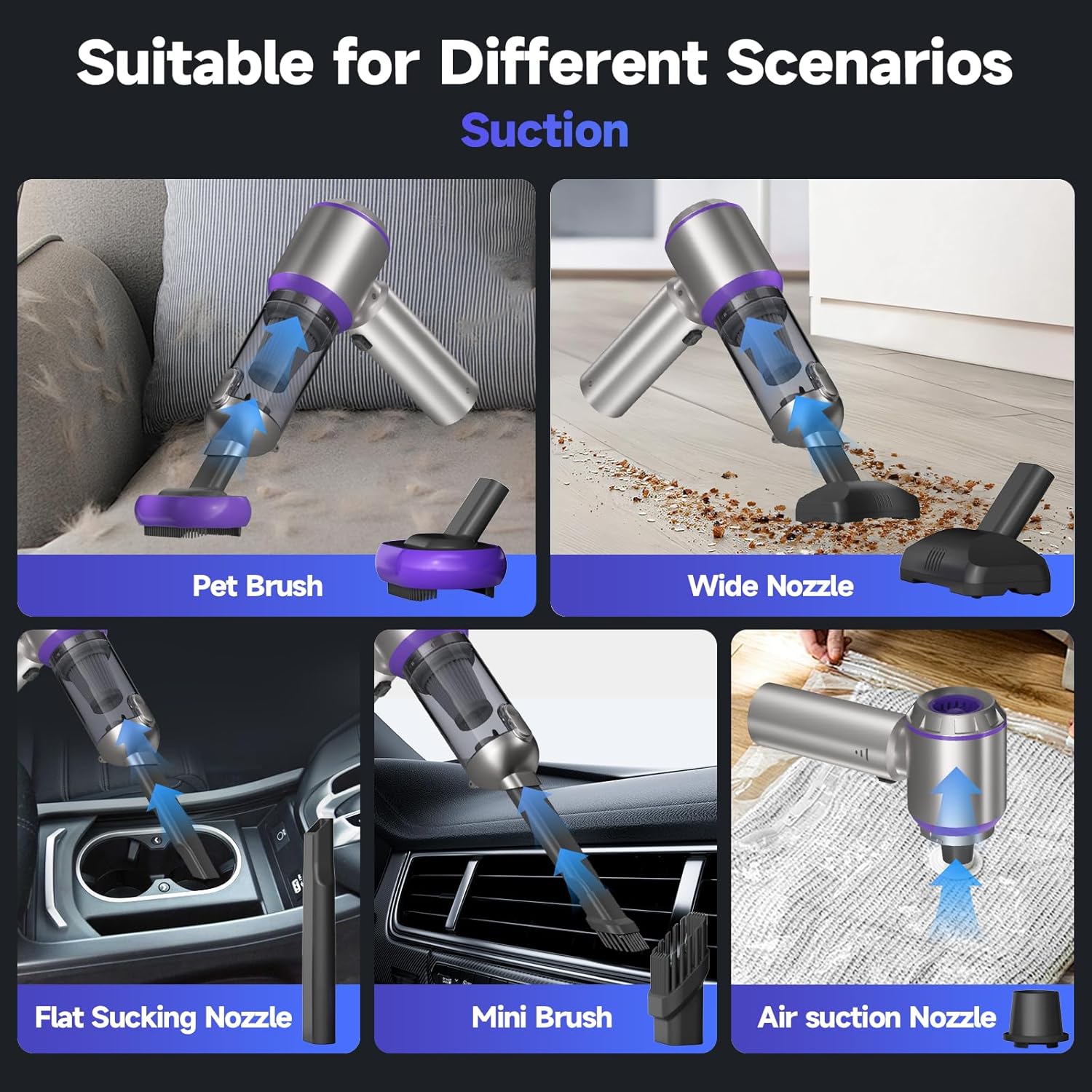 Car Vacuum Portable Cordless, 22000PA High Power handheld Vacuum Cleaner with Brushless Motor,11 in 1 Mini Hand Held Vacuum Cordless Rechargeable Air Duster/Blower/Pump for Car, Home, Pet, Office