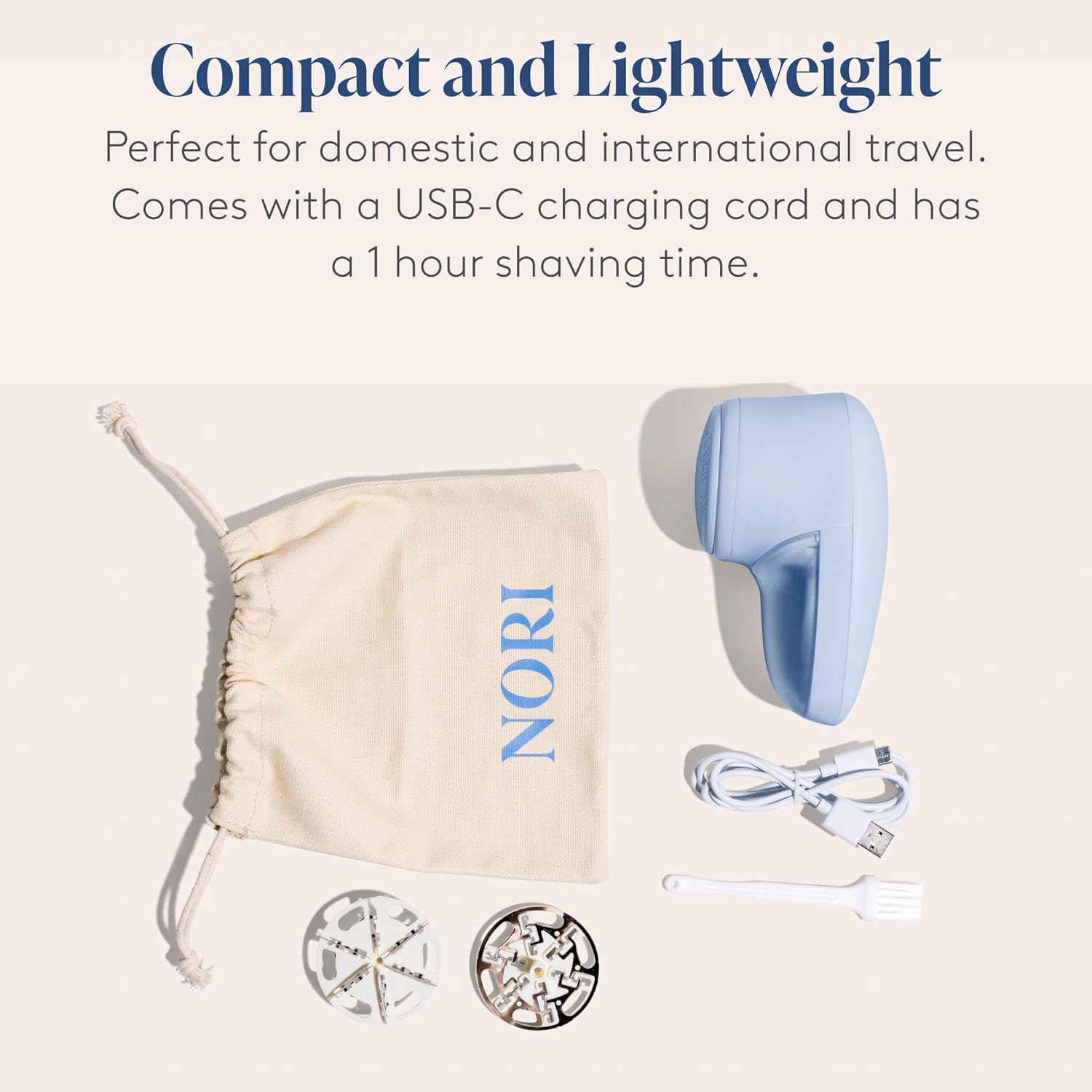 Nori Trim Fabric Shaver - Lint Remover for Clothes & Furniture Couch Pilling - Sweater Pill Remover - Clothes Shaver with 6 Precision Blades - Wireless and Rechargeable - Blue