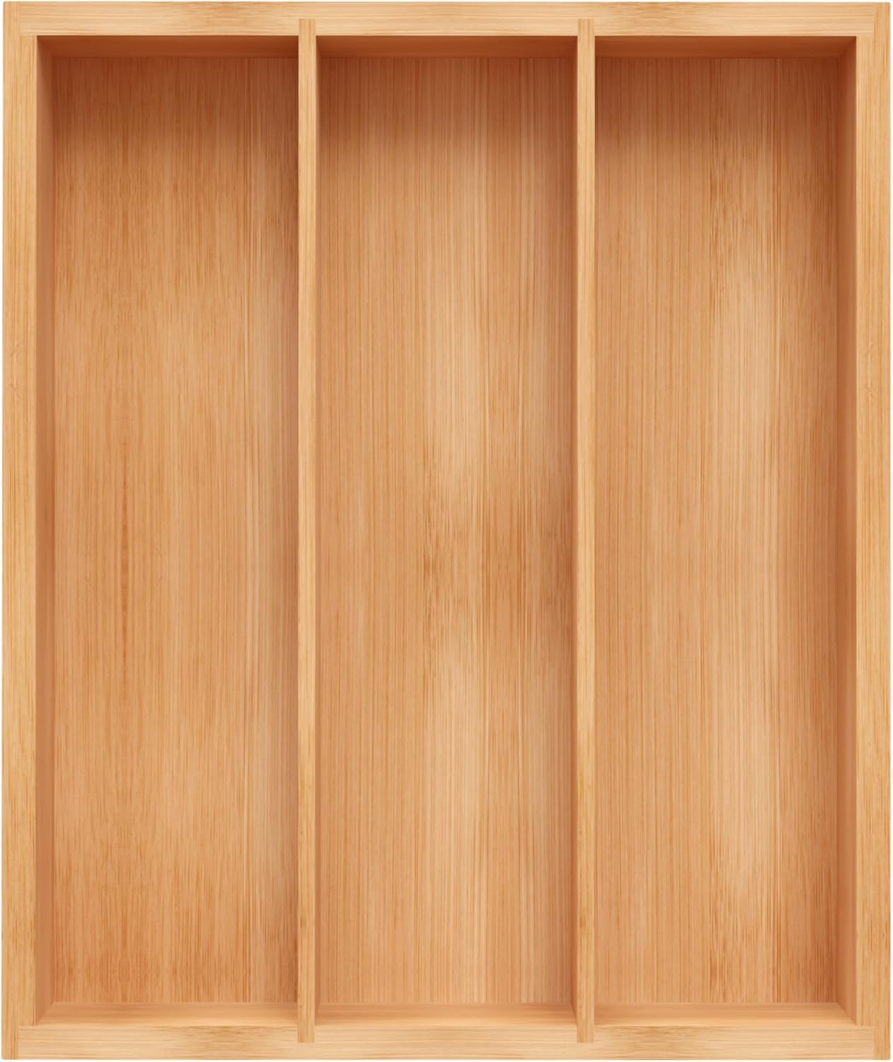 Bamboo Utensil Drawer Organizer, Silverware Tray Organizer, Kitchen Drawer Organizer for Flatware Cutlery, (Natural, 3 Slots)