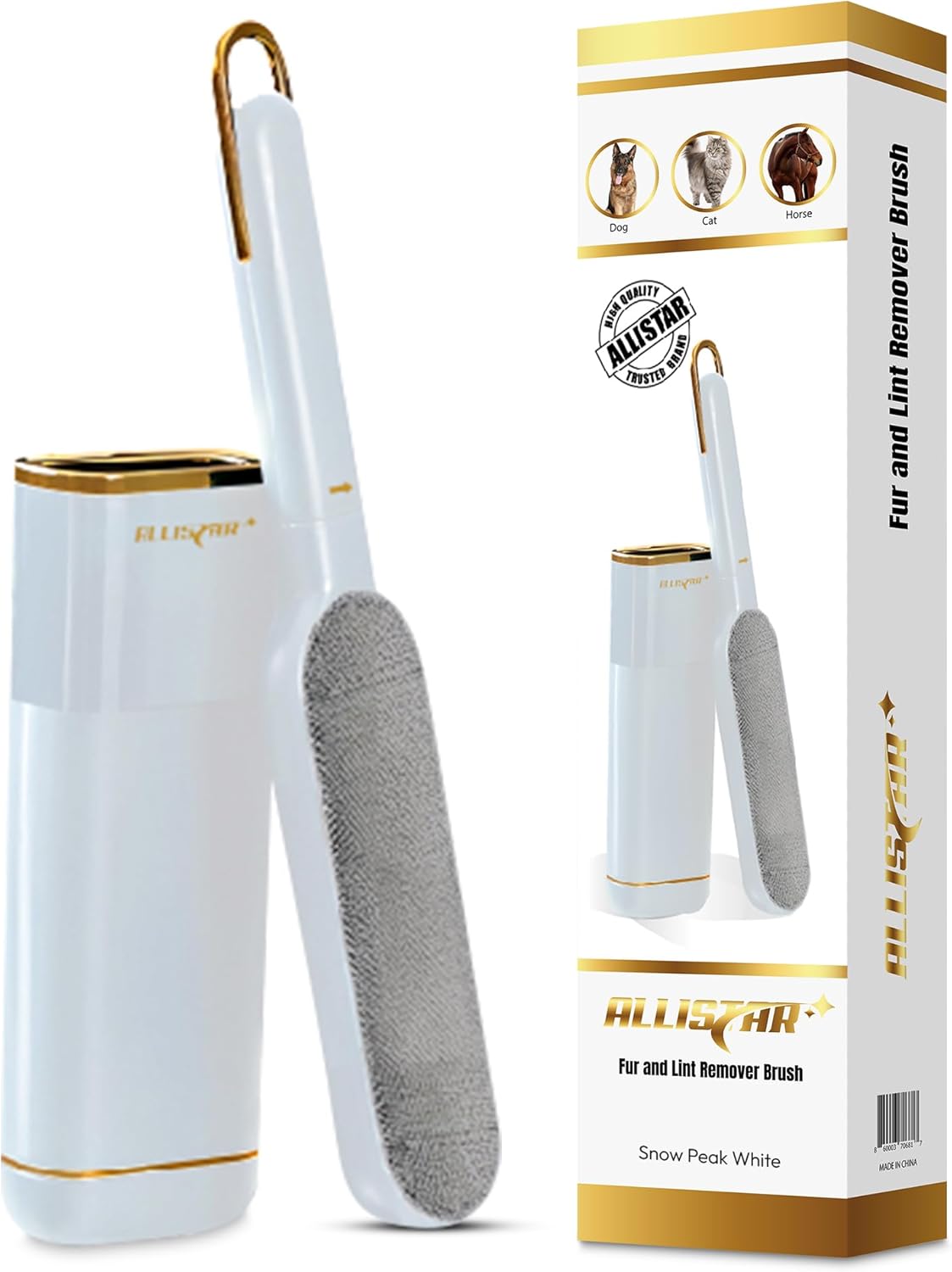 Lint Brush, Pet Hair Remover, Lint Remover for Clothes, Sofa, Carpets, Car Seats. Cat Hair Remover. Dog Hair Remover Laundry. Double-Sided. Reusable. Self-Cleaning Base. ALLISTAR (Snow Peak White)