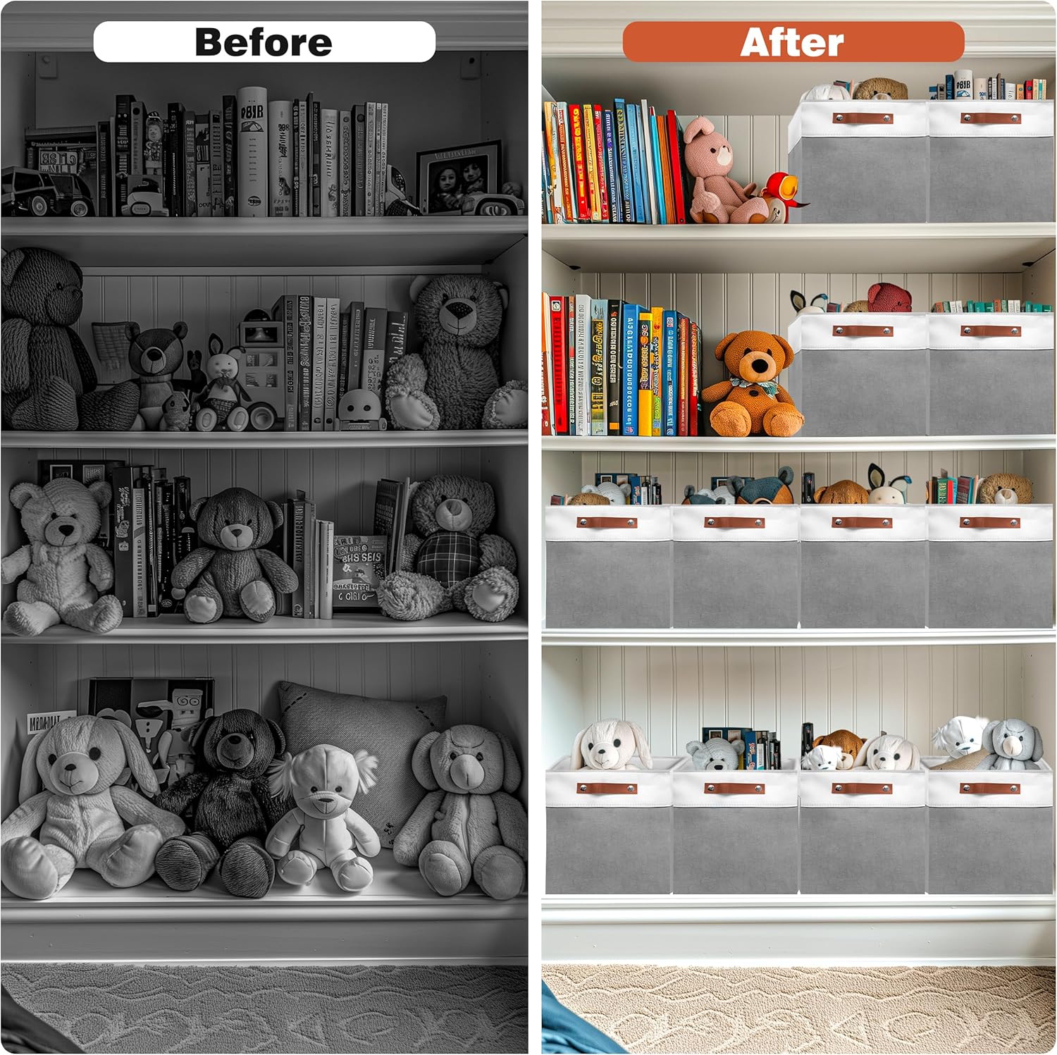 - 【MULTIPURPOSE & VERSATILE】 Our fabric storage basket measures 13*13*13 inch , perfect for organizing a wide range of items like socks, underwear, makeup, office supplies, toiletries, and more. Whether in your bedroom, bathroom, kitchen, or office, these baskets help you maximize space and maintain a tidy environment.
