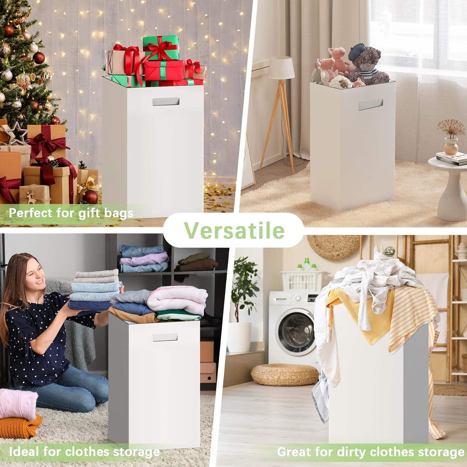 Extra Strong Corrugated Cardboard Portable Garbage Can, 4 Pack Reuseable and Disposeable Extra Large Trash Cans, 13 Gallon (21.6" H x 13.5" W x 10" D), Recycled Garbage Can and Recycling Bins, White
