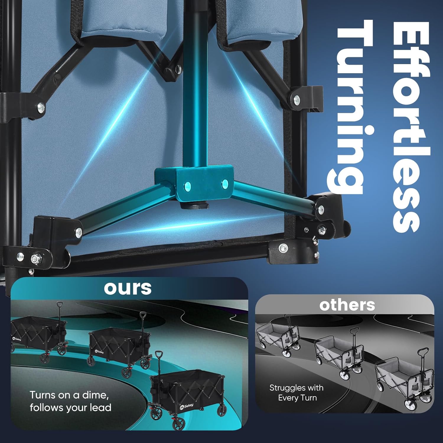 Sekey Collapsible Foldable Wagon with 330lbs Weight Capacity, Heavy Duty Folding Wagon Cart with Big All-Terrain Wheels & Drink Holders. Blue