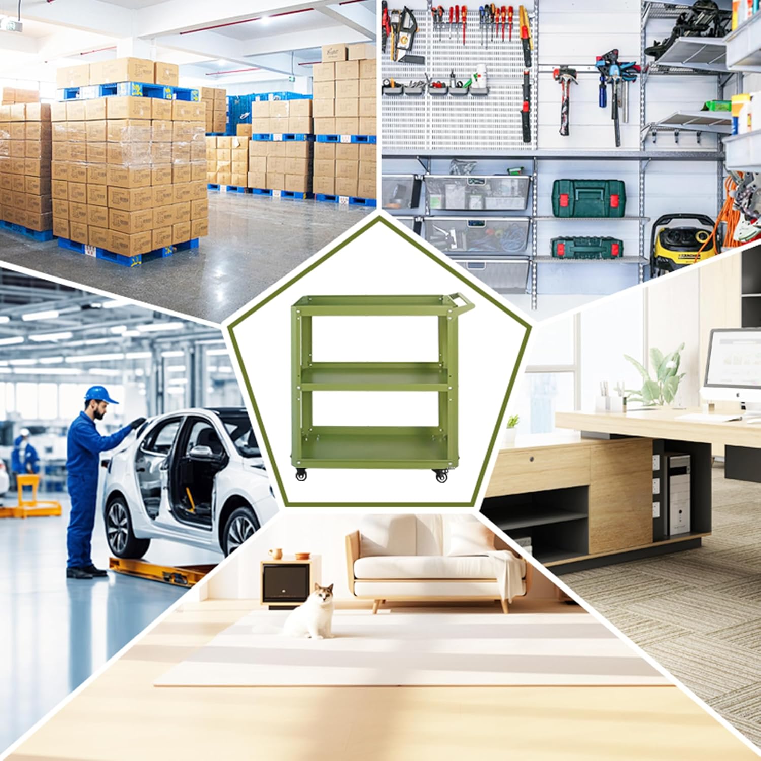 - Multi-Functional Cart: This multifunctional composite cart has the dual practical attributes of tool and sundries storage. It is suitable for various scenarios including garage, warehouse, workshop, home, kitchen, offices, fulfilling the storage and placement requirements of different scenarios