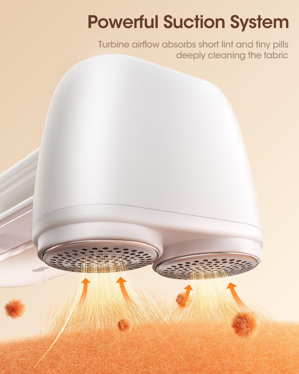 - 【Long-Lasting Battery & Fast Charging】The built-in 2000mAh rechargeable battery offers up to 4 hours of runtime. Recharges in 3 hours via USB-C. Dual-turbine motors and upgraded blades ensure this electric lint shaver, pilling remover, and fuzz cleaner restores everything from knits to cushions with ease.