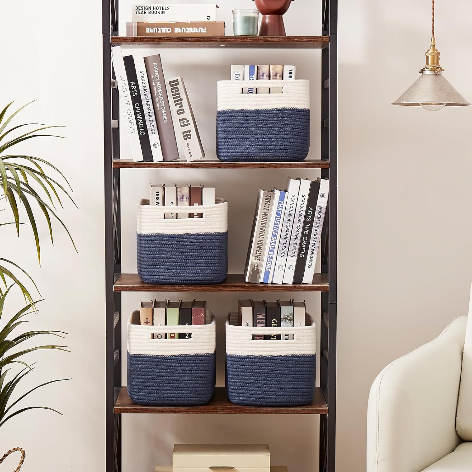 OIAHOMY 4 Pack Storage Baskets for Organizing, Basket for Shelves with Handle, Woven Baskets for Storage Toys, Towels, Books, Cotton Rope Basket 13" L x 9 " W x 7.8 " H, Blue & White
