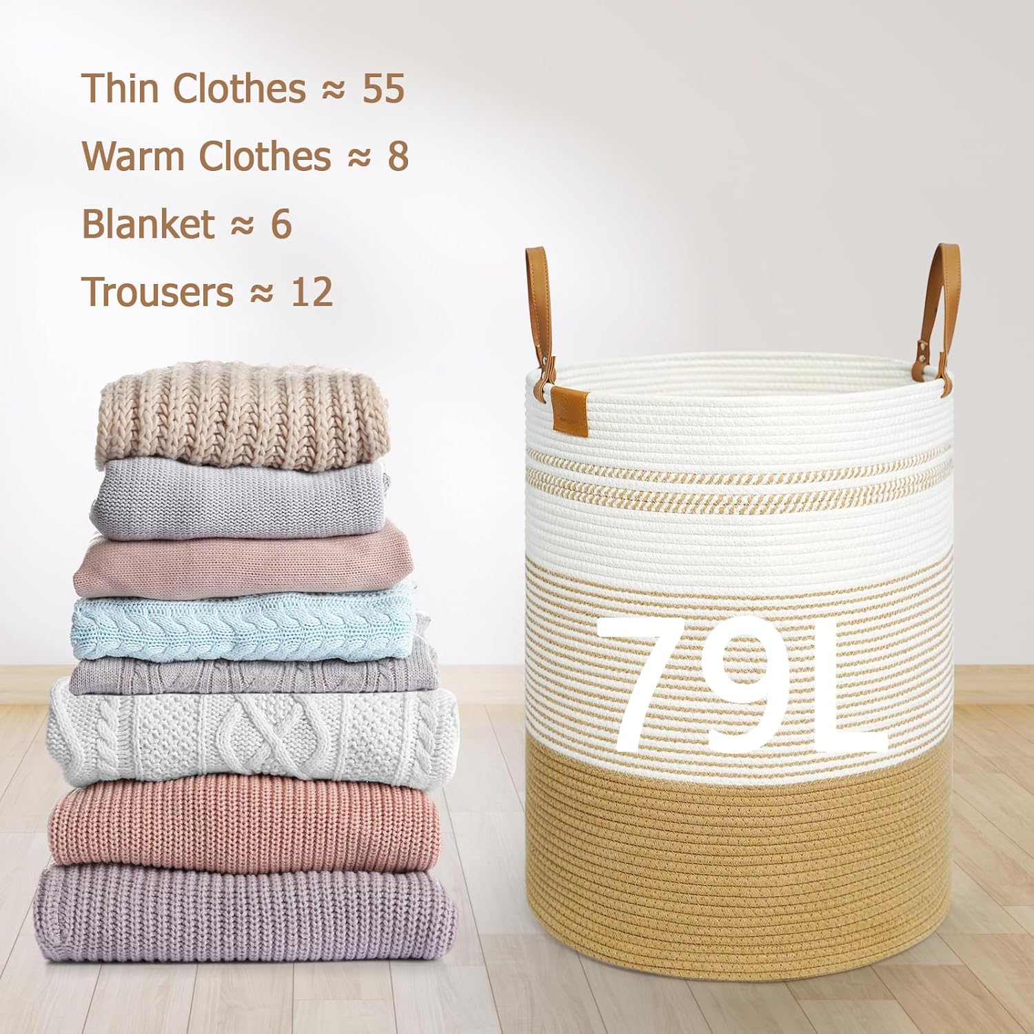 - Versatile Storage Solution: This tall woven cotton storage basket isn’t just for laundry! It’s the perfect blanket basket, toy organizer, or even a decorative piece in your living room. Whatever your needs, this large, multi-functional basket brings both style and practicality into your space