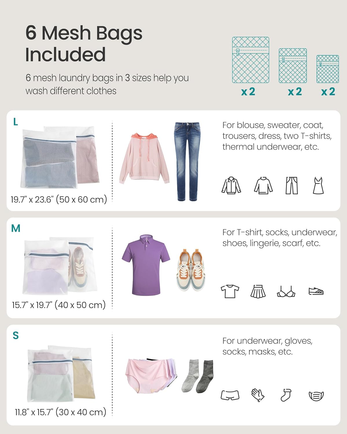 - [6 Mesh Laundry Bags Provided] This hamper comes with 6 laundry bags to help you protect your underwear, socks, or other delicates when you wash them in the washing machine