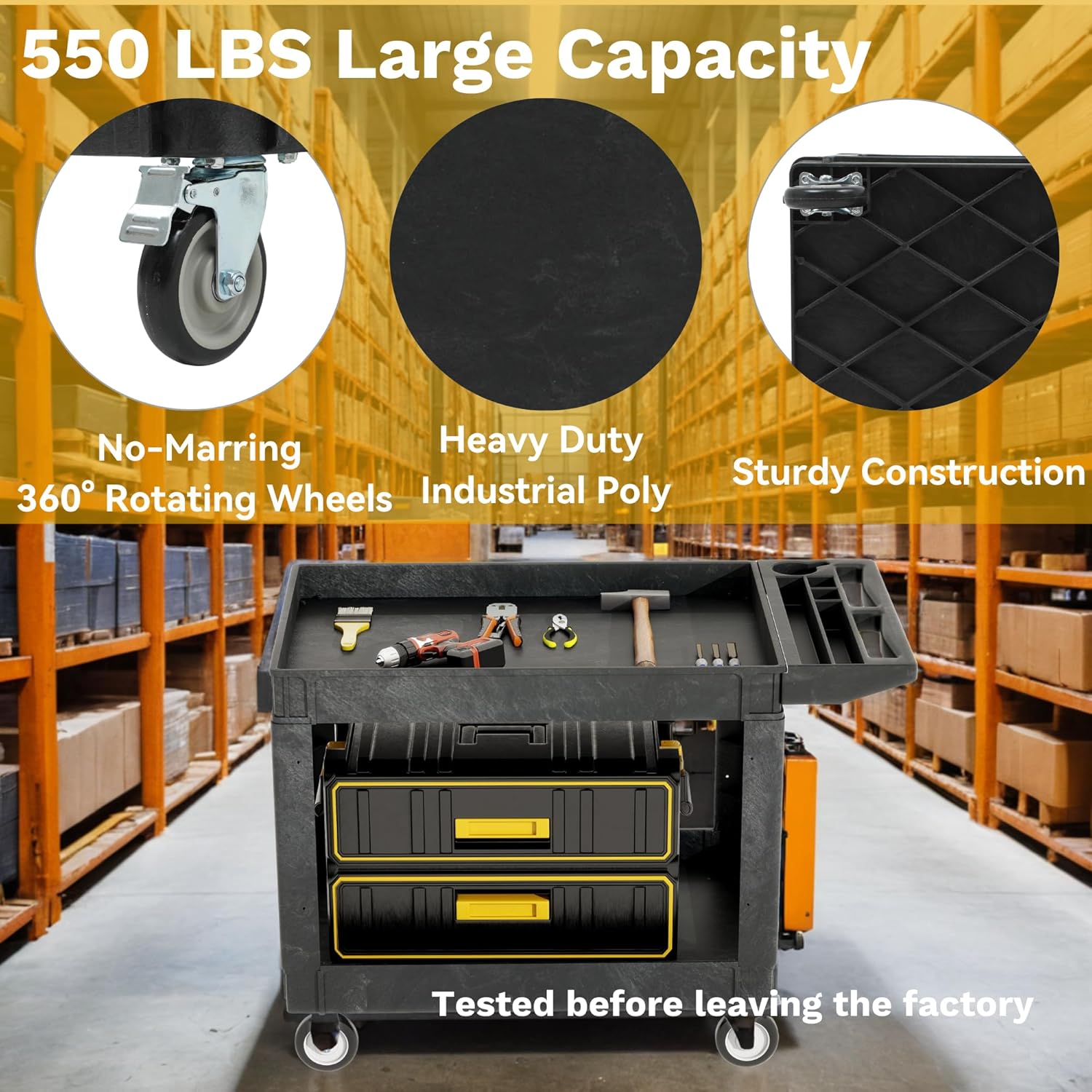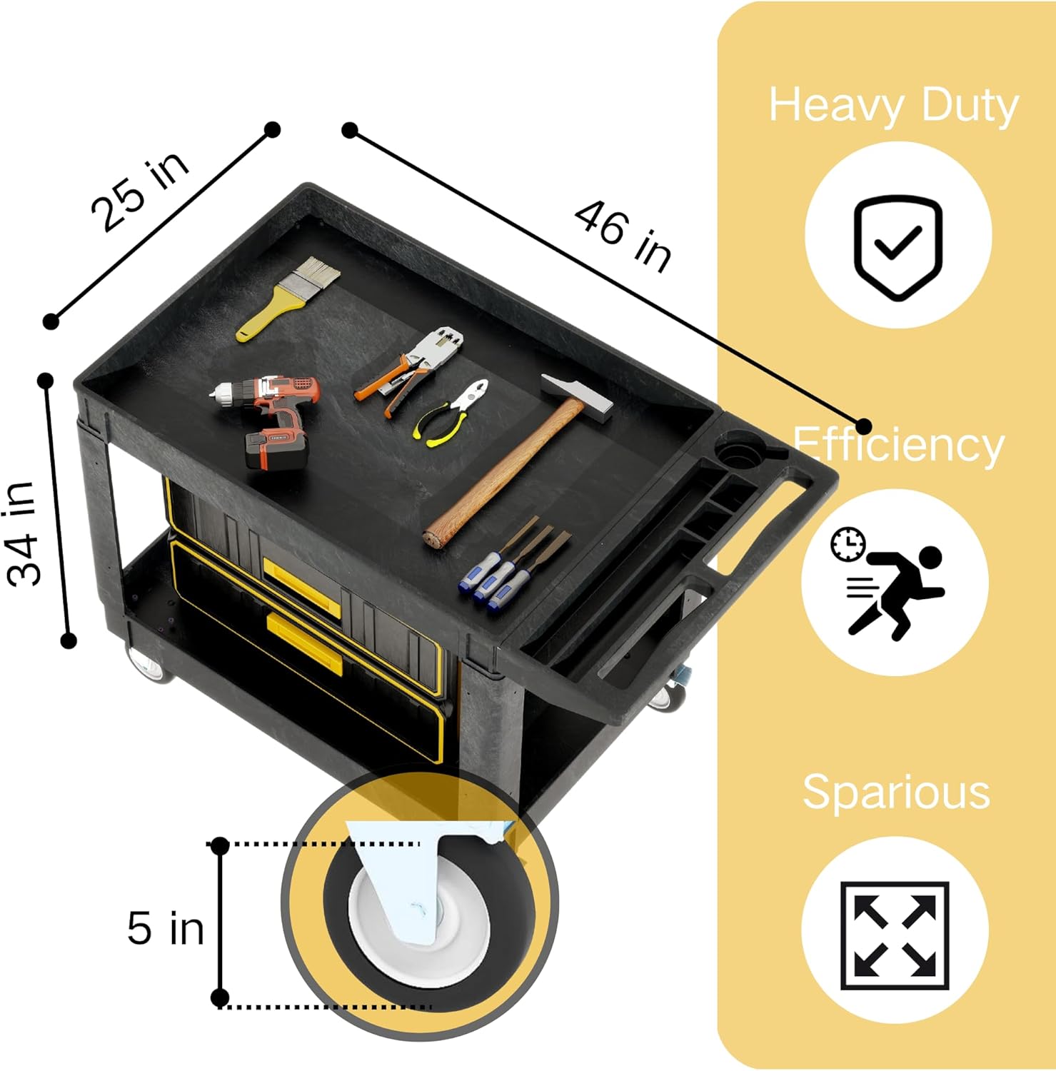 DWVO Utility Service Cart on Wheels, 45 X 25 in 550 LBS Heavy Duty Rolling Cart Plastic Work Cart for Warehouse Garage School & Office Cleaning