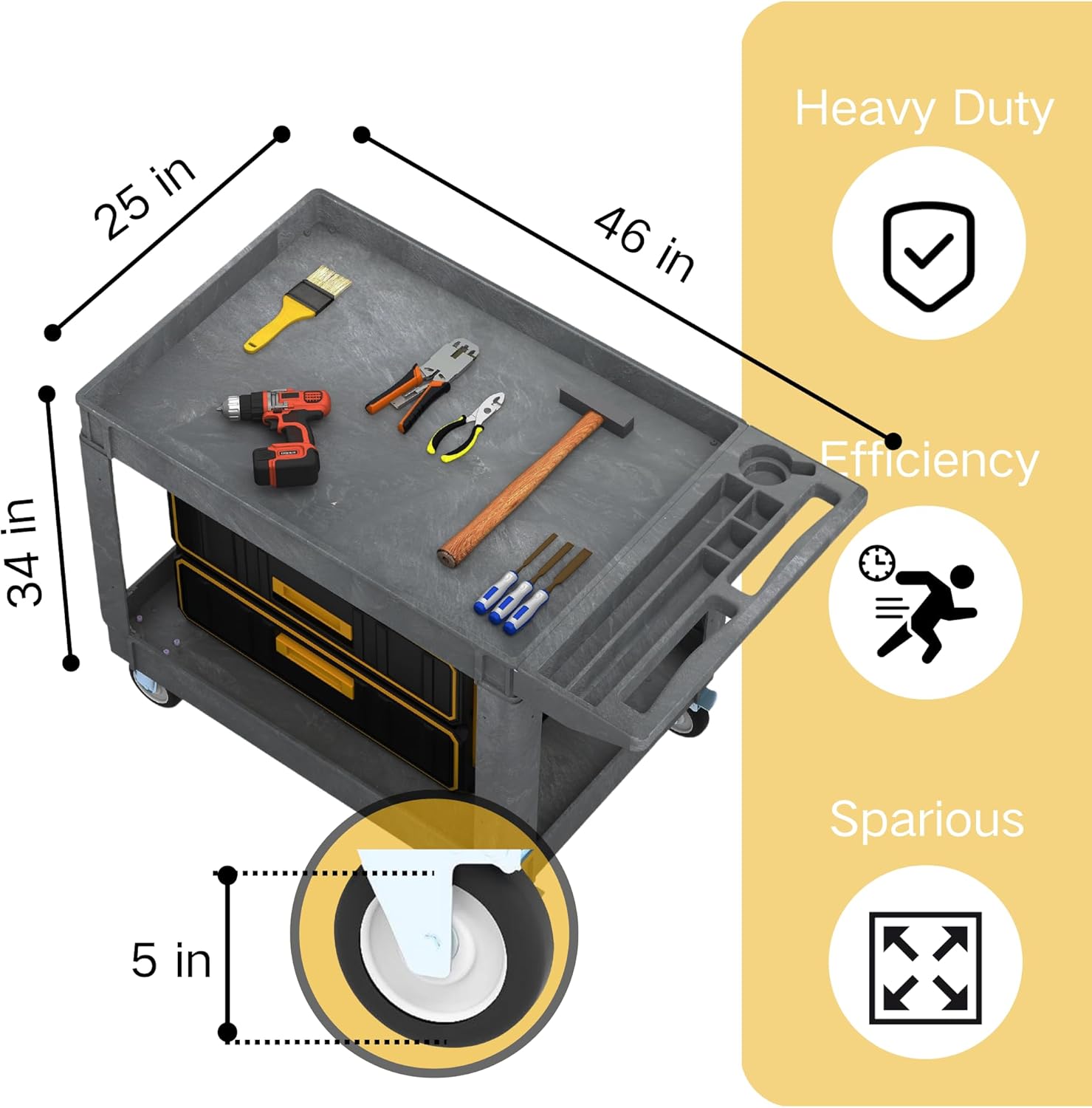 DWVO Service Utility Cart on Wheels, 45 X 25 in 550 LBS Heavy Duty Rolling Cart Plastic Work Cart for Warehouse Garage School & Office Cleaning