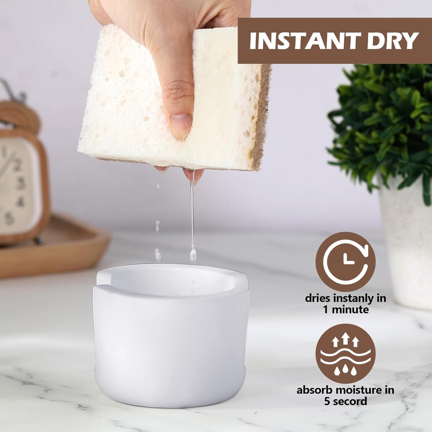 - Quick Drying and Water Absorption: the sponge rack is made of quality diatomite, which effectively absorbs excess water and makes the kitchen countertop clean and dry