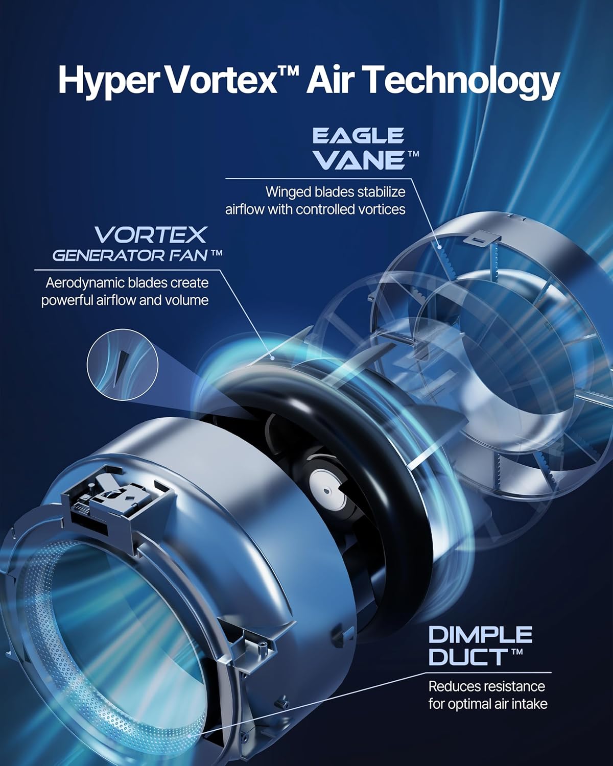 - The All-New HyperVortex system effectively cleans air in spaces up to 2,640 ft² in just 60 minutes and reduces noise level as low as 21.6db. (CADR: Dust 376, Smoke 352, & Pollen 419)