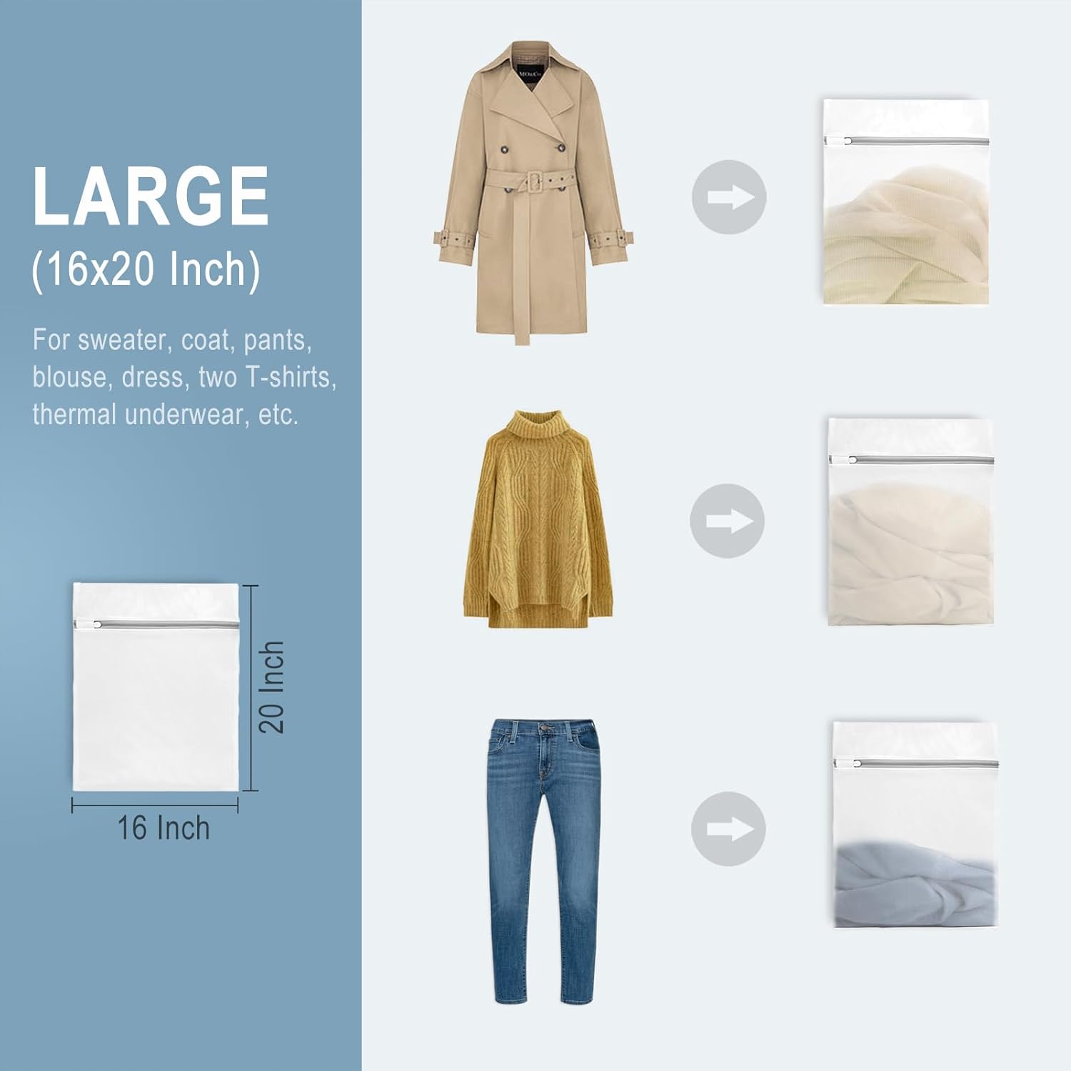 - Including 3 large bags 16" x 20" (40 x 50 cm) to ensure you can use them for all your delicates